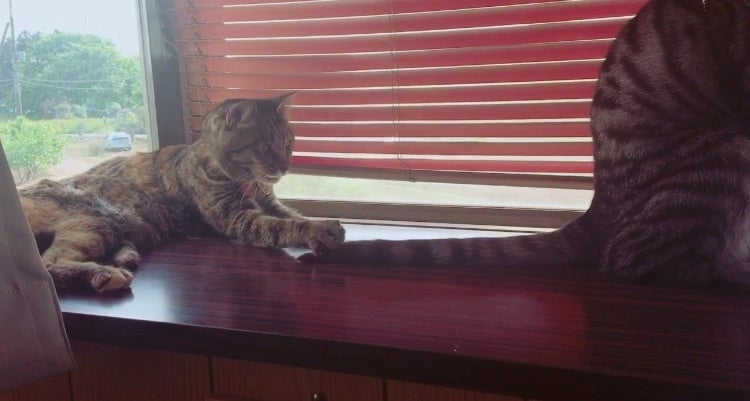 そんな突然の同居猫に対し、ルノンは嫌な顔一つせず受けいれてくれ、トトは順調に元気を取り戻し、今では後をついて回ってはちょっかいを出す甘えん坊の妹分となりました。