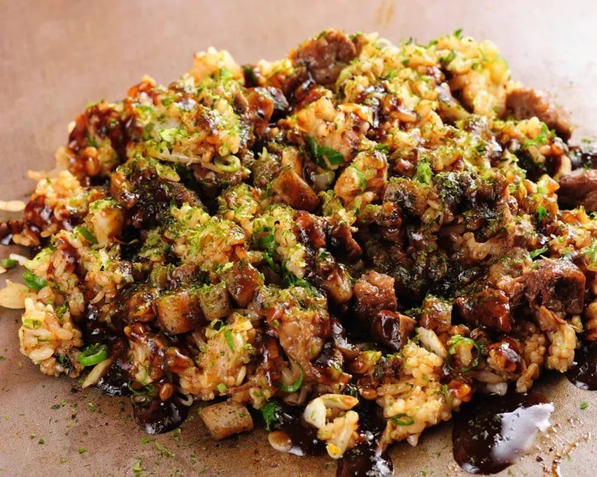 私たちのお好み焼き・焼きそば・鉄板焼きの原点は、長田であります。戦後から続く下町の味をベースにしながら、素材は、地産地消をモットーとし、兵庫県及び瀬戸内近海のものを使用しております。そして伝統の作り方へのこだわりはもちろん、新たな長田のお好み焼き・鉄板焼の提案もしております。例えば「ぼっかけそばめし」は食べる直前に「ぼかっけ」を小鍋から、商品へかけるスタイルをとっておりますが、それを日本で初めて行ったのは当店です。また屋台で「そばめし」を日本で初めて提供したのも当店です。そのほか、ホル玉そば、ネギシソ焼き、ステーキそばめしなどオリジナルの商品を次々と開発し、提供しております。