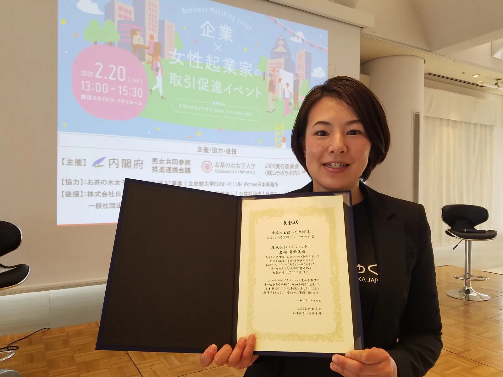 全国の個性あふれる女性起業家を表彰する「J300アワード」にて現在クラウドファンディング中の「こんにゃくフェイクミート事業」で2019年度大賞を受賞致しました。