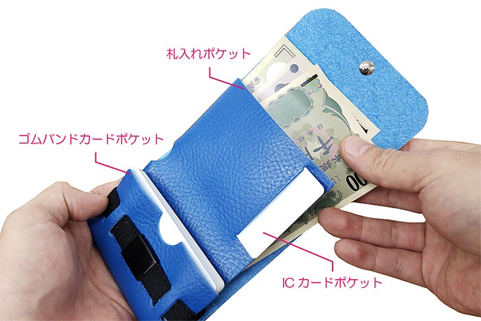 特にゴムバンドを利用したカードポケットは、「カード段」という概念を無くすことにより一枚一枚カードを収納するのではなく大量のカードをどっさり入れることができます。