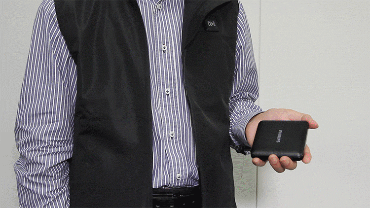 発熱するにも関わらず、軽くて薄く折り畳みが簡単。まるでスマートフォンを持ち歩くかのように手軽に持ち運びが可能。肌寒くなったときに羽織るようとして持ち歩いたり、アウターの中に着込んでも着膨れせずに着用できます。