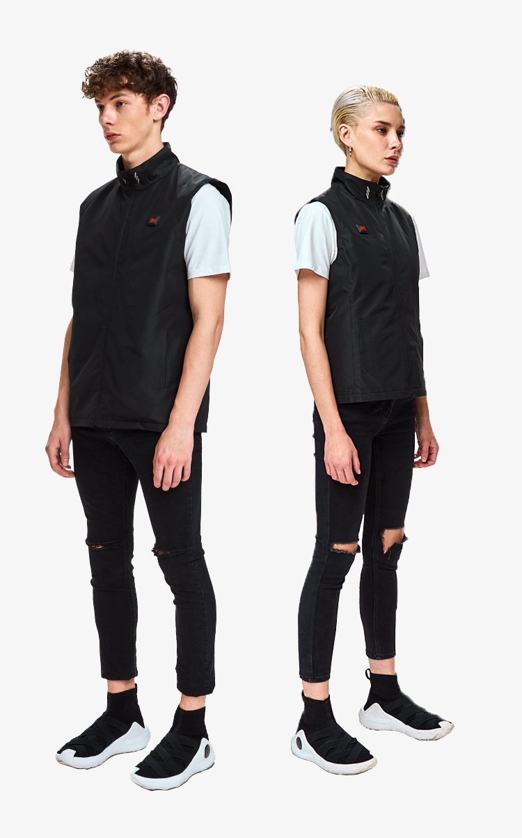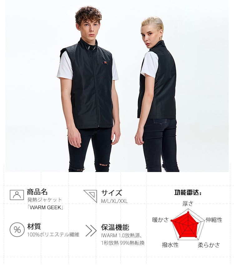 真冬から春・秋にかけて着用できるボタンで温まるヒートベスト「Warm Geek Best」。
