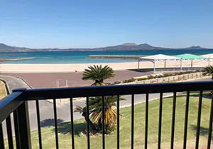 バンガローのベランダからの眺め。目の前がビーチという最高のロケーション。