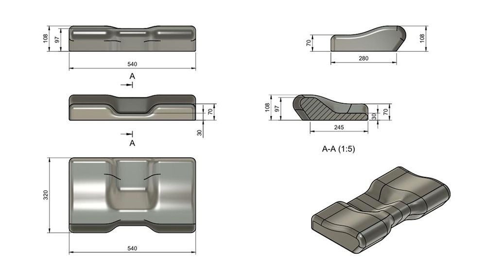 頚椎の理想的なCカーブは頚椎支持曲線で出ます。私たちは、このラインを作るために病院の先端リアルタイムX-ray機器を使用しました。作って撮影し、作って撮影して。頚椎の変化を観察し、何度も再設計した末、今の支持面曲線を作ることができました。