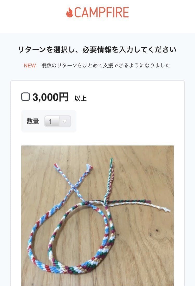 「プロジェクトを支援する」をクリックすると、リターン(お礼のお返し)を選択するページに移ります。