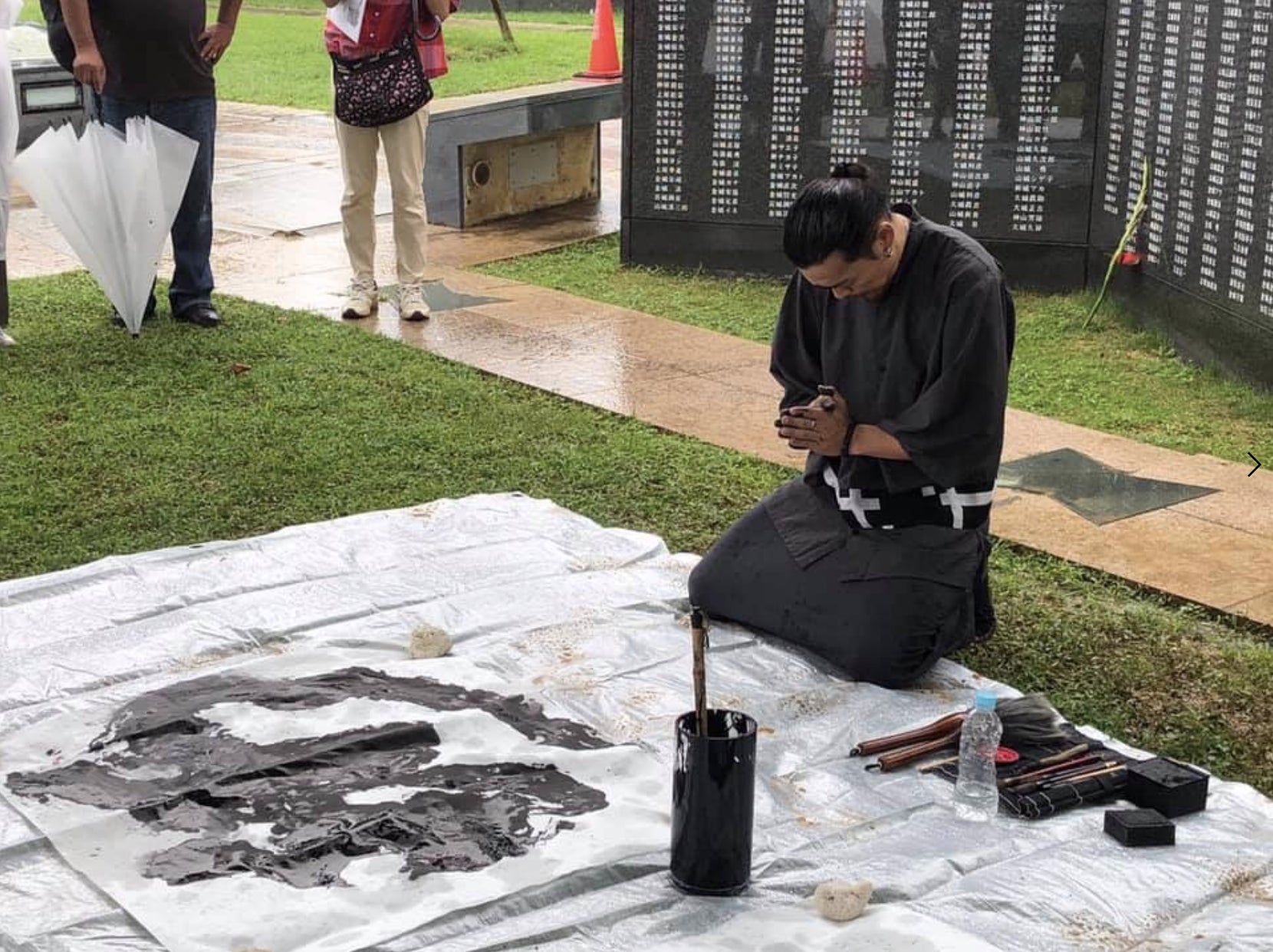 過去に沖縄慰霊の際には糸満の海岸で汲み上げた海水で墨を擦りました。