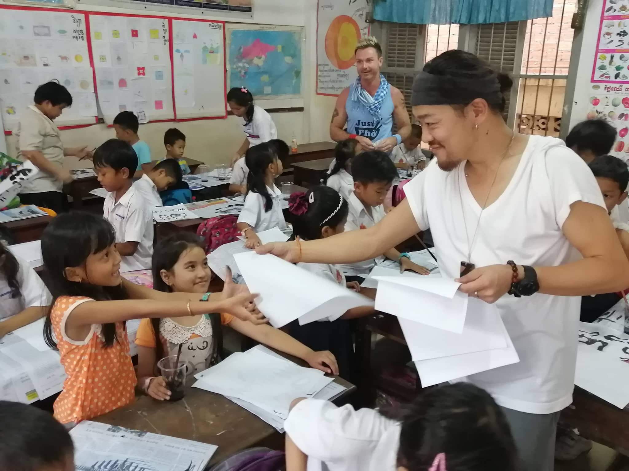2020/02/19 09:41カンボジアの子どもたちの識字率がとても低いと聞いて、少しでも「書く」ことの楽しさを知ってほしいと思い文具を送るプロジェクトに参加したことがあった。ただ漠然と「自分にも何か出来ることがあるかも」と思い立ったあの頃が懐かしい。そんな僕がカンボジアに行き、教室で子どもたちと「書」の授業をしている。言葉の通じない、文化や生活環境も違うたくさんの子どもたちに囲まれて。日本にいても、どこにいても、「上手く書く」ことだけじゃなく、ただ純粋に「書くこと」を楽しんでほしいと思う。「書くこと」はもちろんだけど、「文字を読める」喜びも知ってほしい。文字が読めることで、僕はたくさんのことを学んだし、文字が書けることで、たぶんたくさんの人に喜びを与えてこれた。すべてではないけど、諦めずに歩き続けてきた先で、20歳頃の自分が見ていた未来がある程度創造できている気がする。「誰かの力になりたい」思っていたよりちっぼけな力にしかなれなかったけど、間違いなく今僕はほんの少しこの世界の役に立てている気がする。日本の皆さんいつも応援してくれている皆さんいつもありがとうございます僕はさらに多くの人の力になっていくことを誓います。この日はバレンタインHappy Valentine!!日本に帰ったら筆を贈る約束をしました。 もっと見る