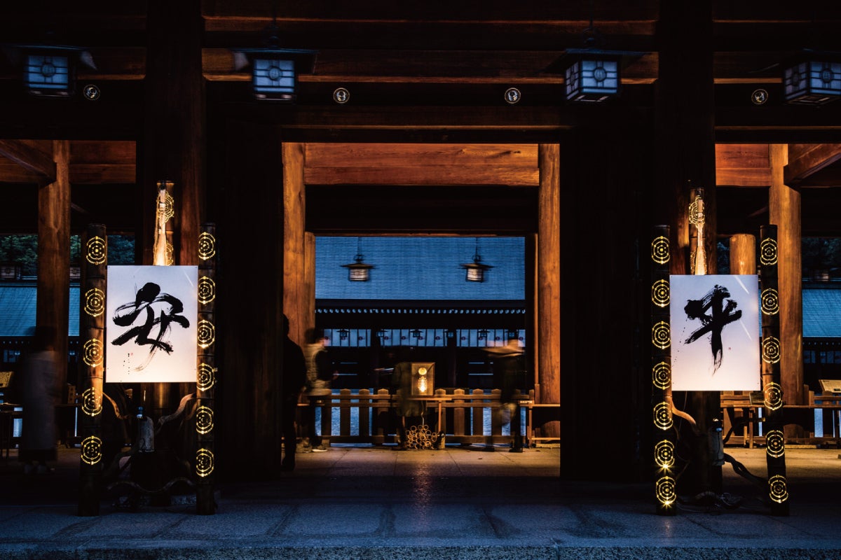 2007年から始めた活動は現在多岐にわたり、10年の歳月を経て「祈り」というテーマにたどり着きました。そして、2017年の三重県護国神社への「奉納」を皮切りに、たくさんの場所で「祈り」をカタチにしています。2018年に「日本のはじまり」の地と言われる橿原神宮へ作品を奉納し、2019年には30年ぶりの大雨となった沖縄慰霊の日を訪れ、慰霊碑を前に書かせていただきました。