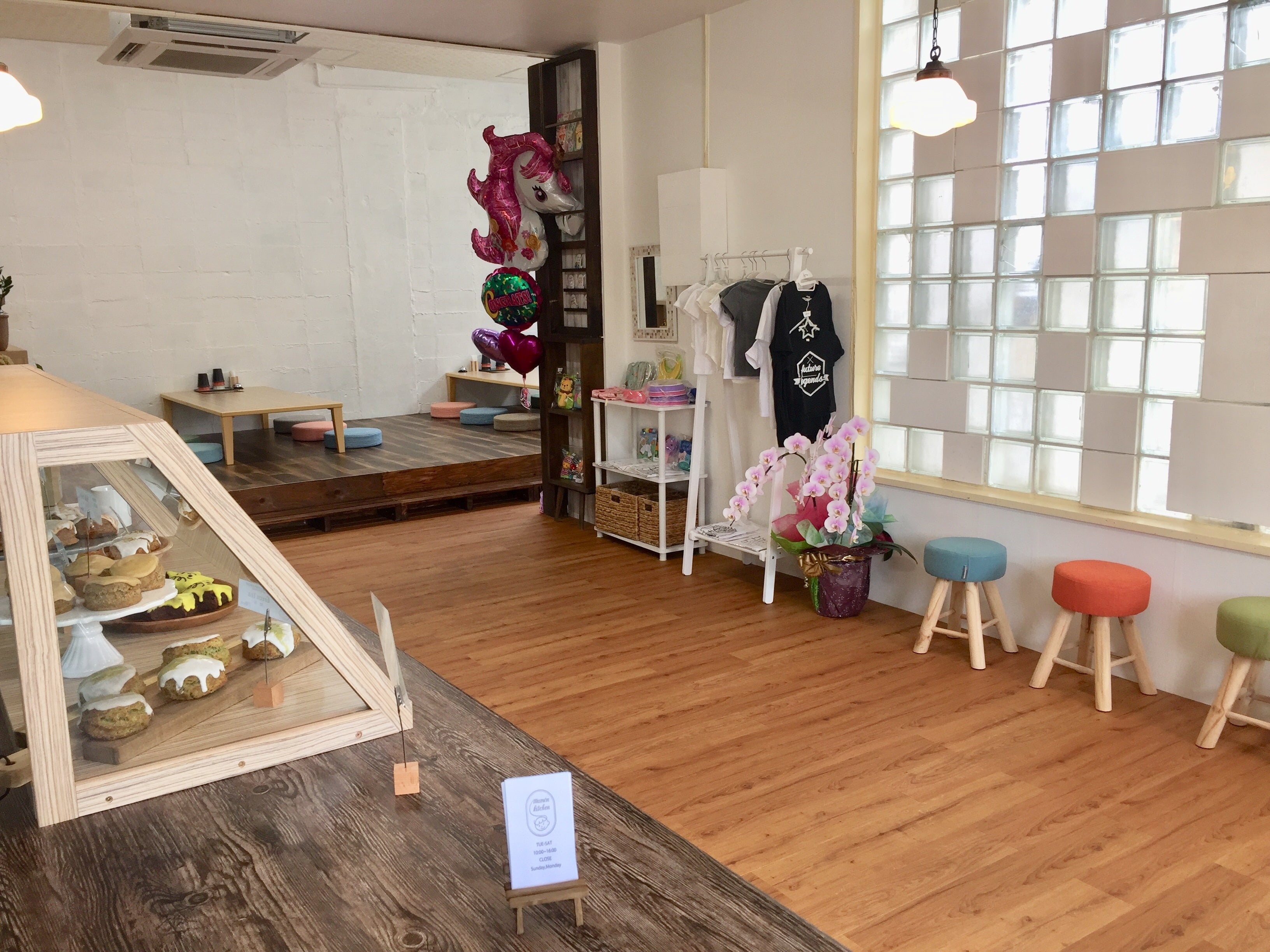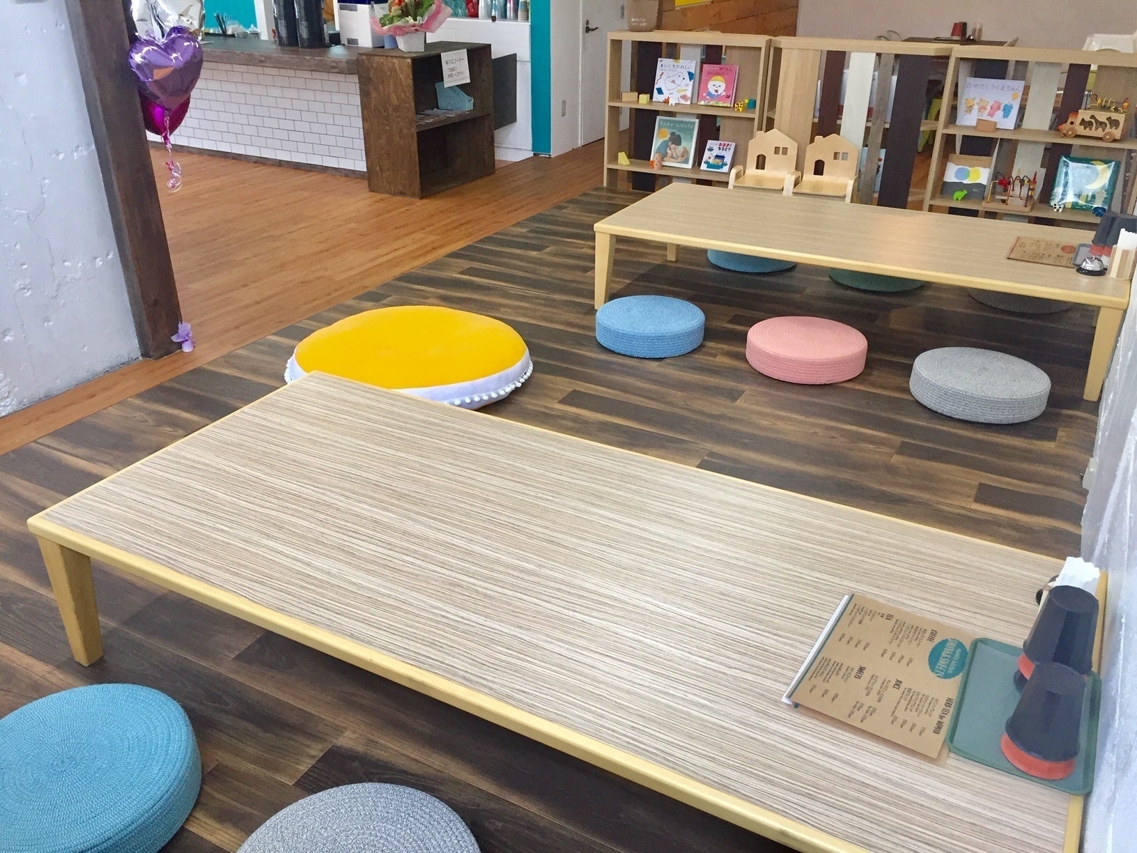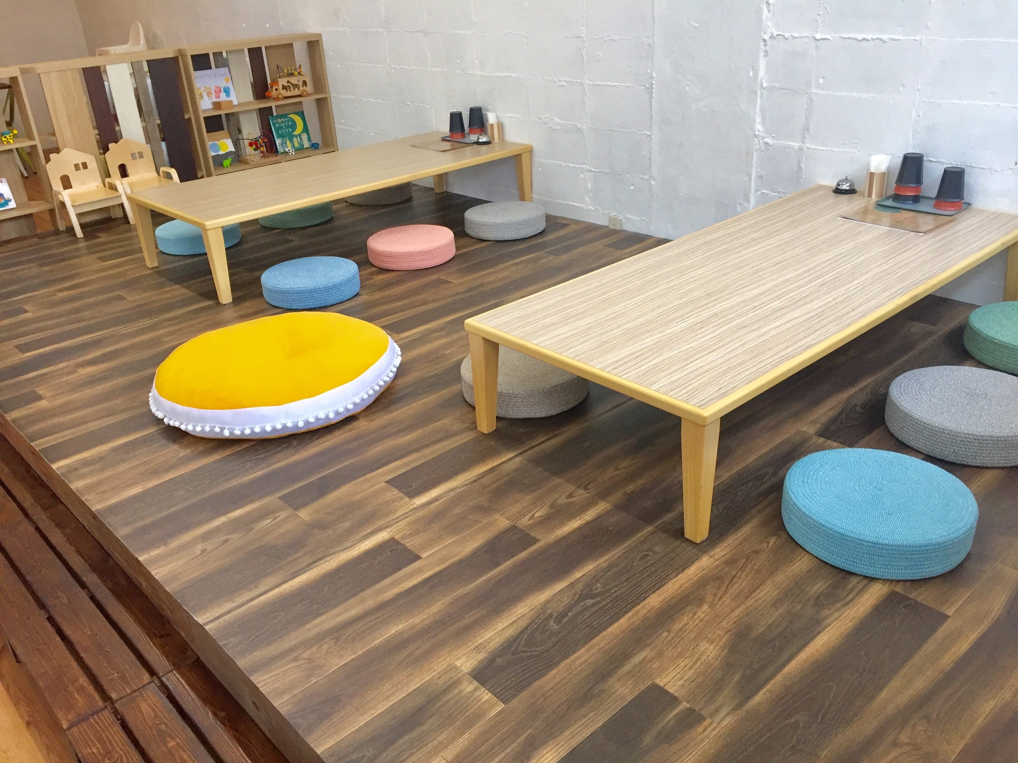 店舗奥に広い空間があったので、ママと子どもたちがゆっくりくつろげる場所をと、座敷を手作り。
