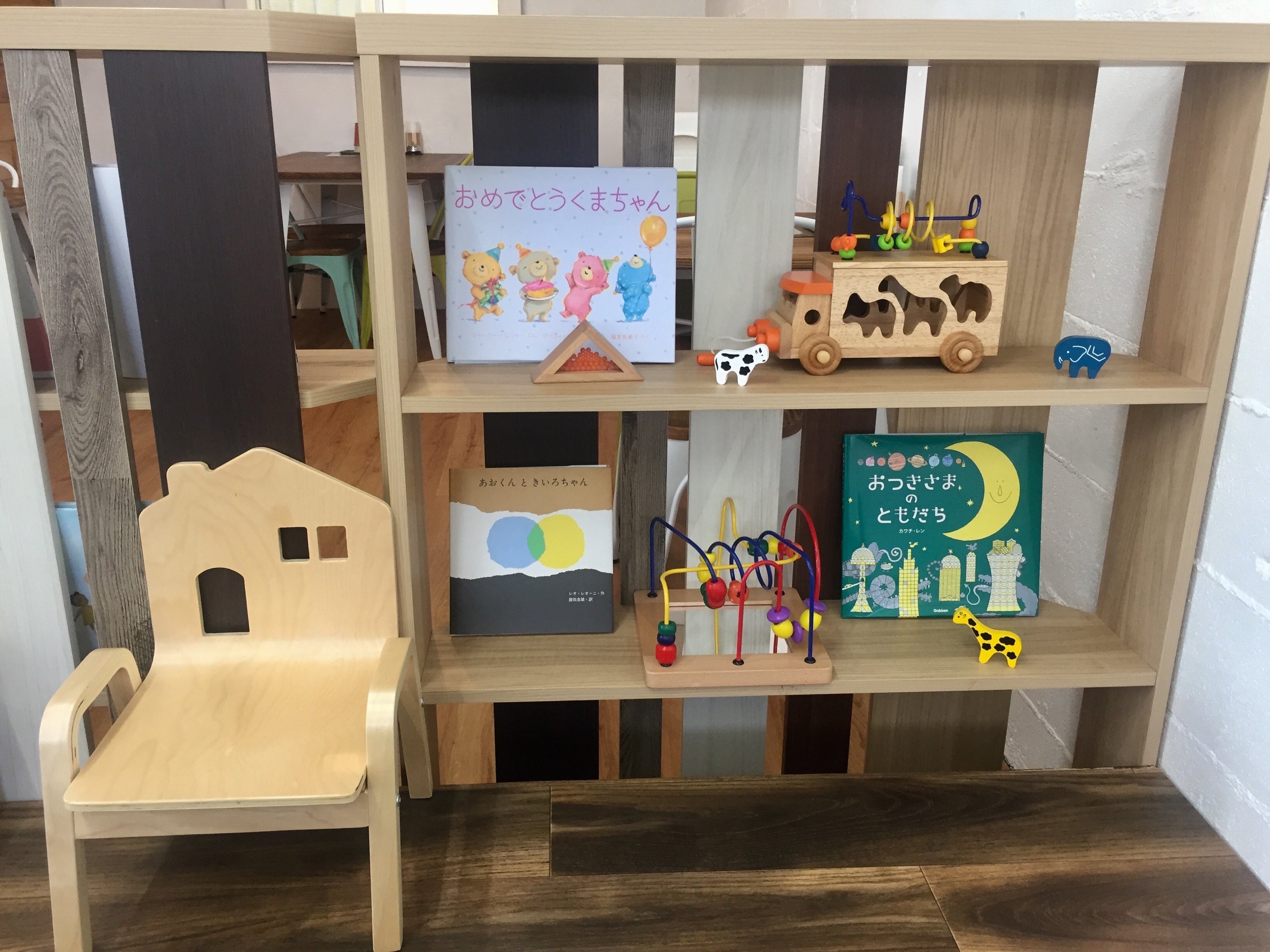 ママと子どもたちがゆっくりくつろげるようにとおもちゃや本も用意しています。