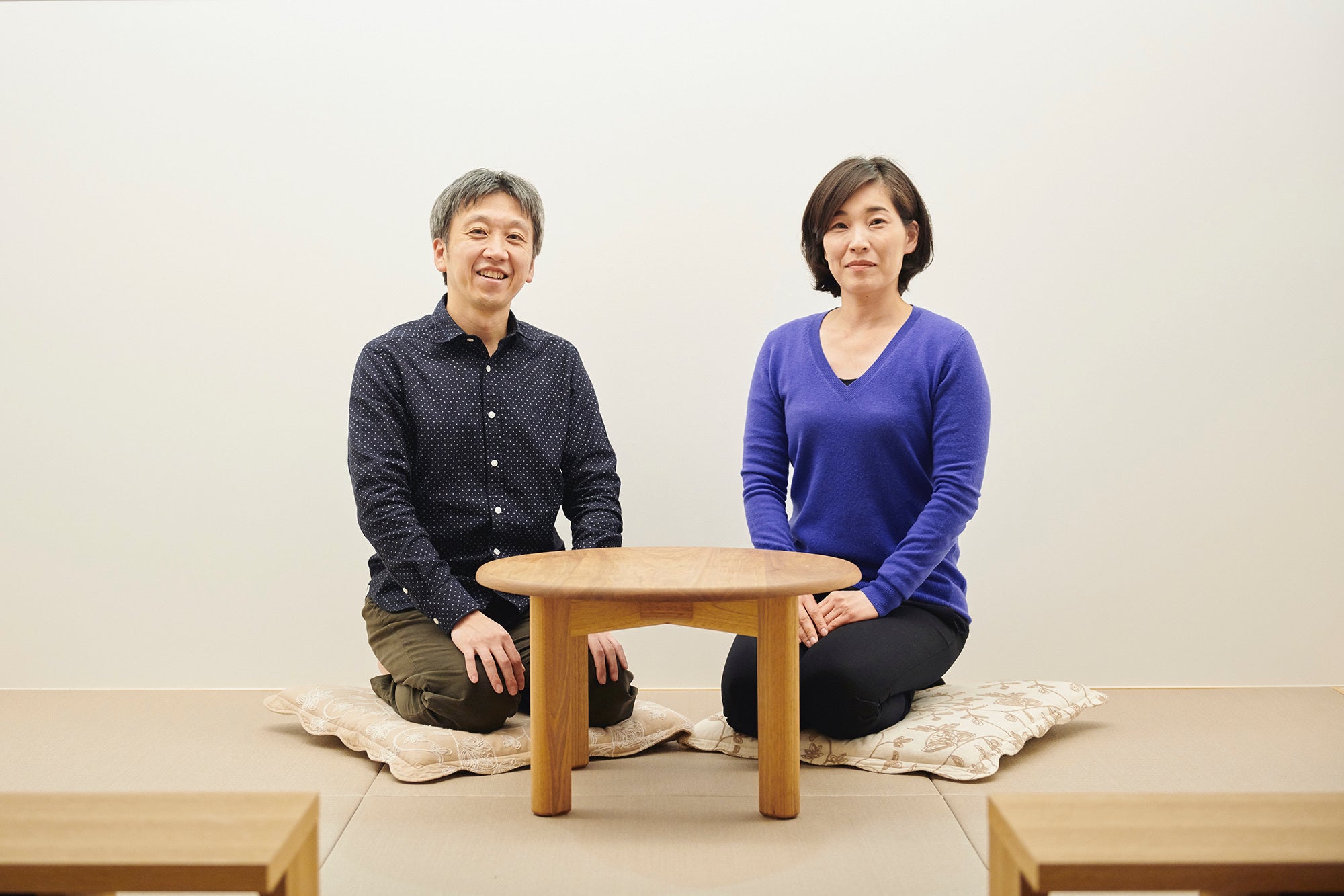 「おちゃのま」というネーミングの着想を得た座敷にて、妻と。