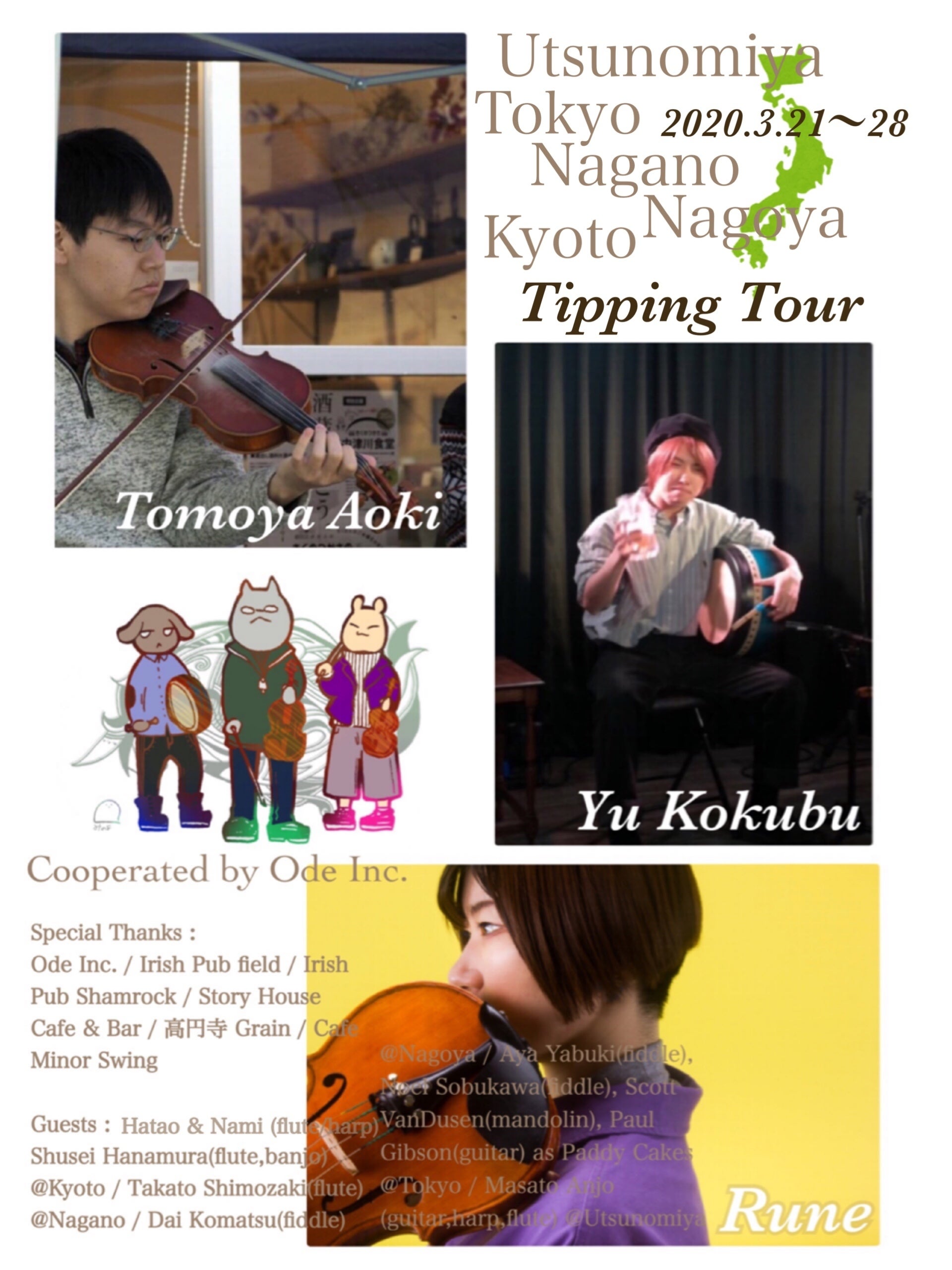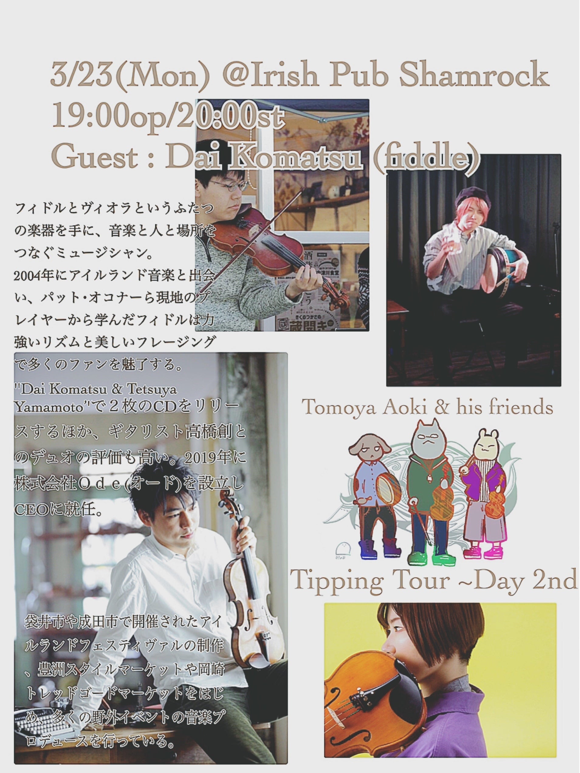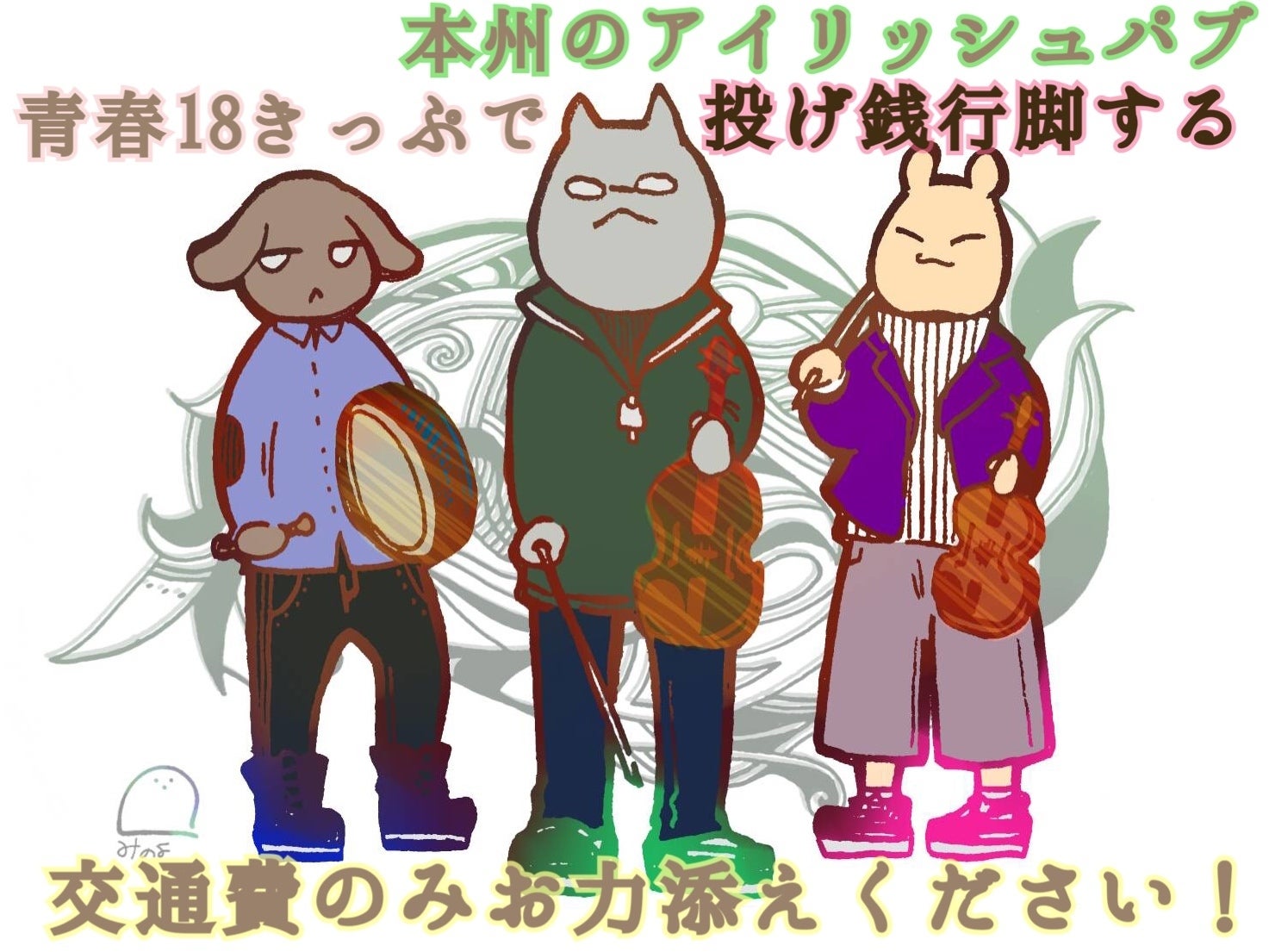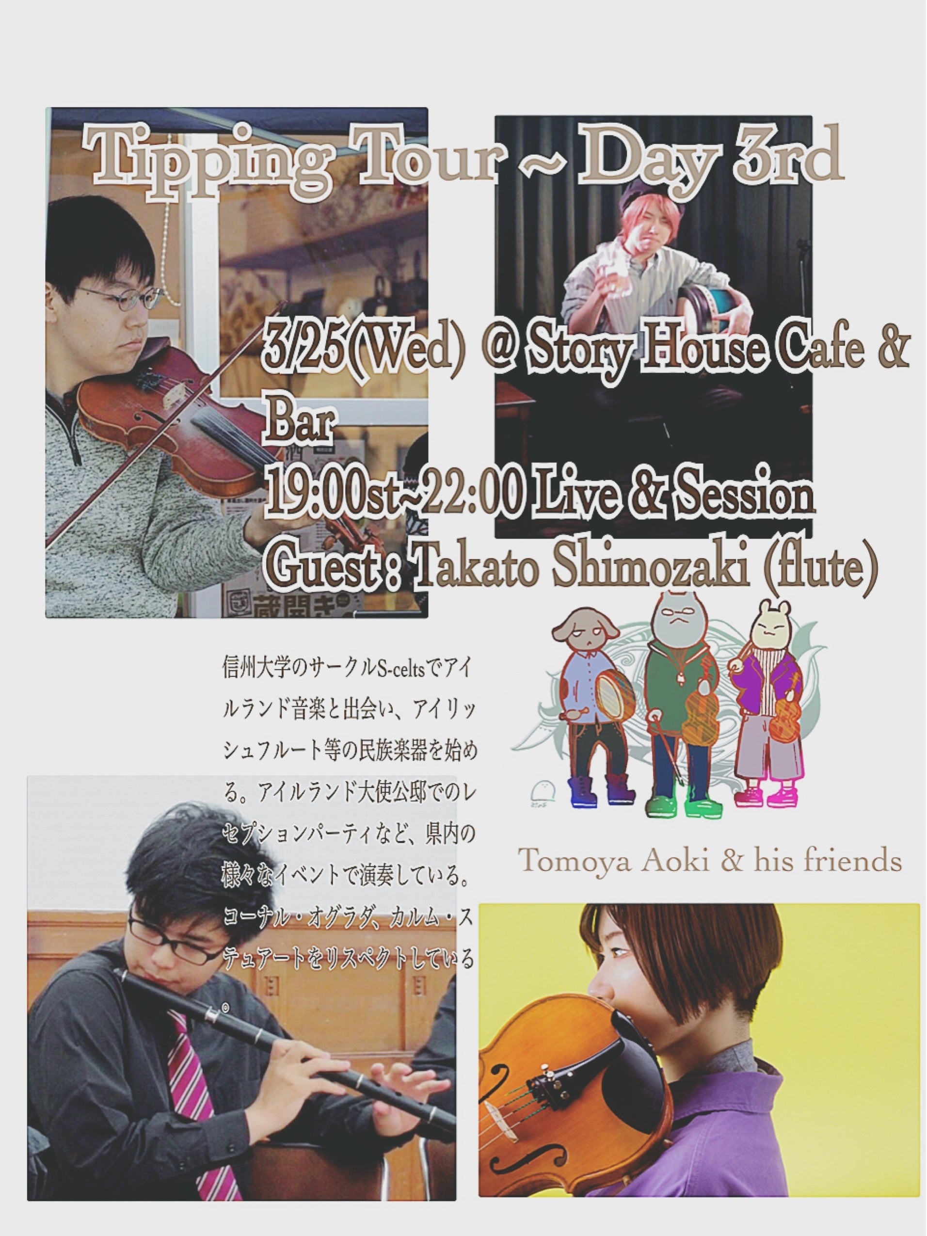 『アイリッシュ音楽を独学する学生3人で、3月21〜28日にかけて本州各地のアイリッシュパブやカフェを投げ銭行脚すること』