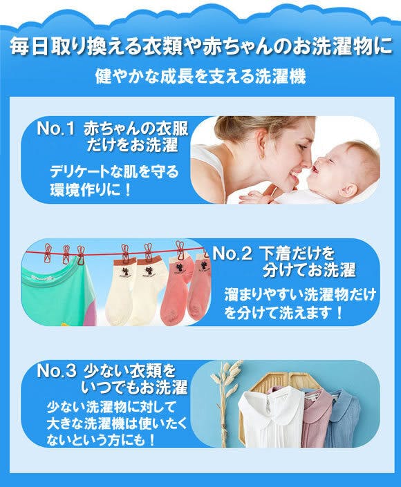 ⇨一般的な洗剤を使う洗濯機との違いは、洗浄の際除菌出来る事が大きな特徴です。