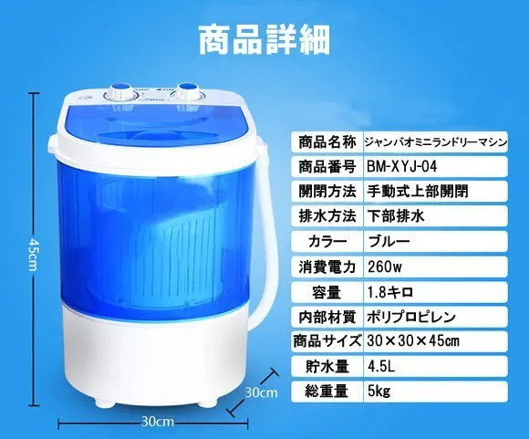*Jumbao Ozone Laundry Machineの本体の重量は約5㎏(水無しの状態)と軽量設計なので、