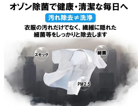 ジャンバオ オゾン ランドリーマシーン使用中に発生するオゾンで空気中のニオイの元を抑えると同時に除菌効果も得られます。