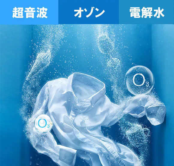 この洗濯機は超音波とオゾンと電解水の力で汚れと臭いを落とします。