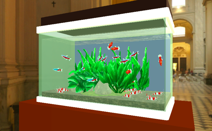 先週お話しした、公開に向けて準備をすすめておりまして、水槽の色や背景と