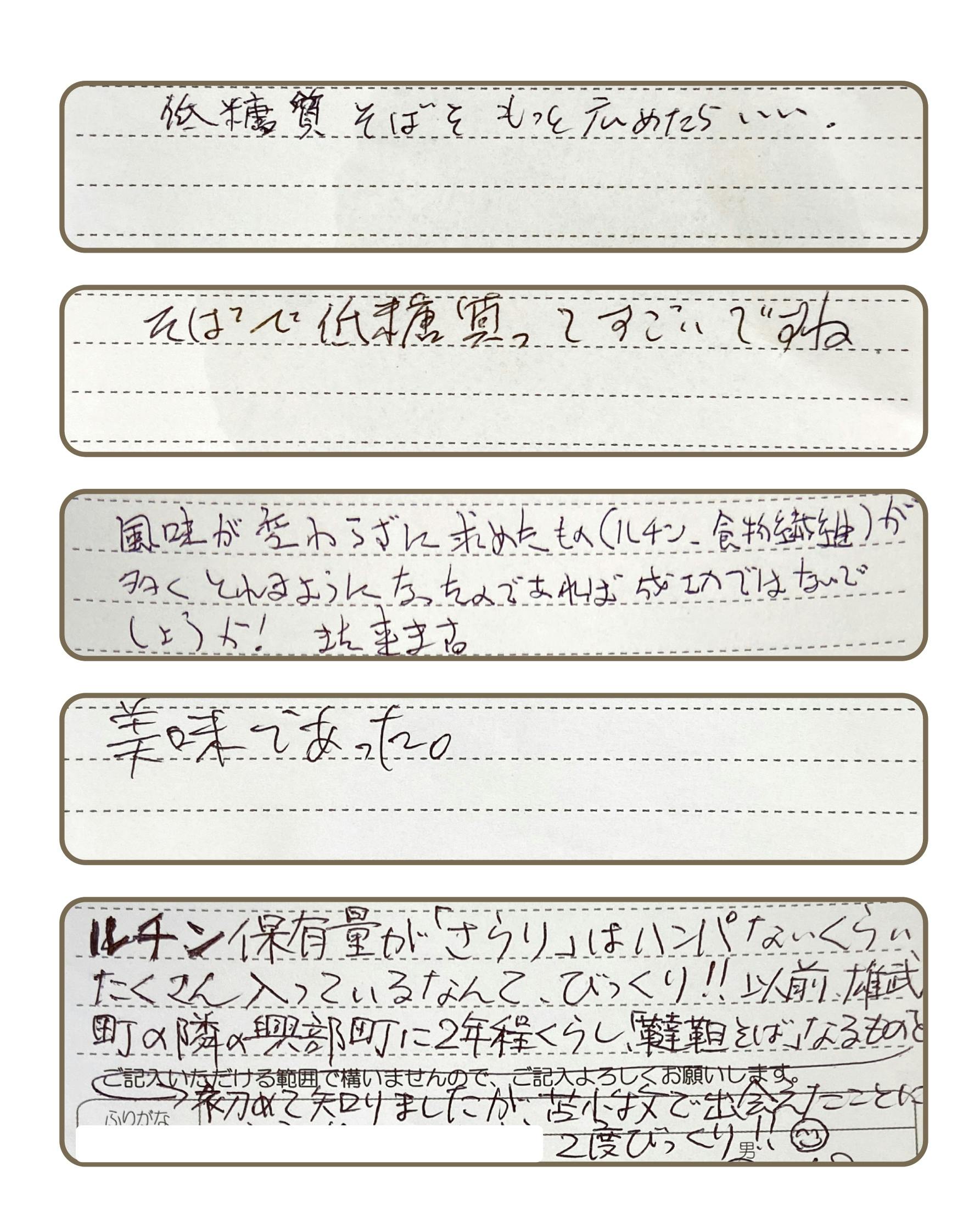 この3点に重点を置き、低糖質だったん蕎麦の開発をすすめてまいりました。