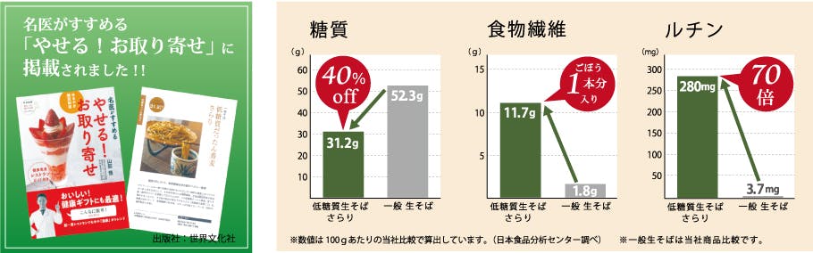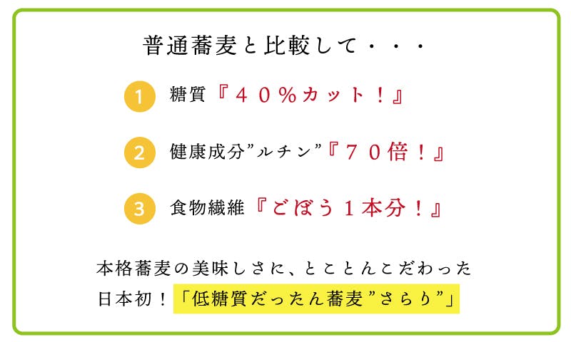 『糖質40%オフ!』『ルチン70倍!』『食物繊維もたっぷり!』