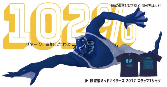 目標を達成したので、何ができるかと制作スタッフで考え、 ショートの制作数を増やす!クオリティアップ!などは、もちろん今後やっていくとして… 今回のクラウドファンディングで、直接ファンの方にお会いしたり、たくさんのコメント、ご意見いただいたり… と、やっぱり、パトロンになってくださった方々や、ファンの方々が「あ、いいね!」と思ってくださるものを提供したいと思い、それが、「スタッフT」になっちゃいましたw (安直かもしれませんが、スタッフ的にもこれがいいね!とw) もちろん、制作スタッフもこれを着て、これからも「放課後」を作っていこうと思います。 あ、みなさまの想いを背負ってって感じでしょうか?ww ということで、ラスト5日ですが、 最後まで、お付き合い、応援のほど、よろしくお願い致しますー! ※画像をクリックするとプロジェクトページに移動します。 ・「放課後ミッドナイターズ2017 スタッフTシャツ」の詳細はこちらから↓https://camp-fire.jp/projects/view/22578 ※購入する際はCAMPFIREへのアカウント登録及びログインが必要です。