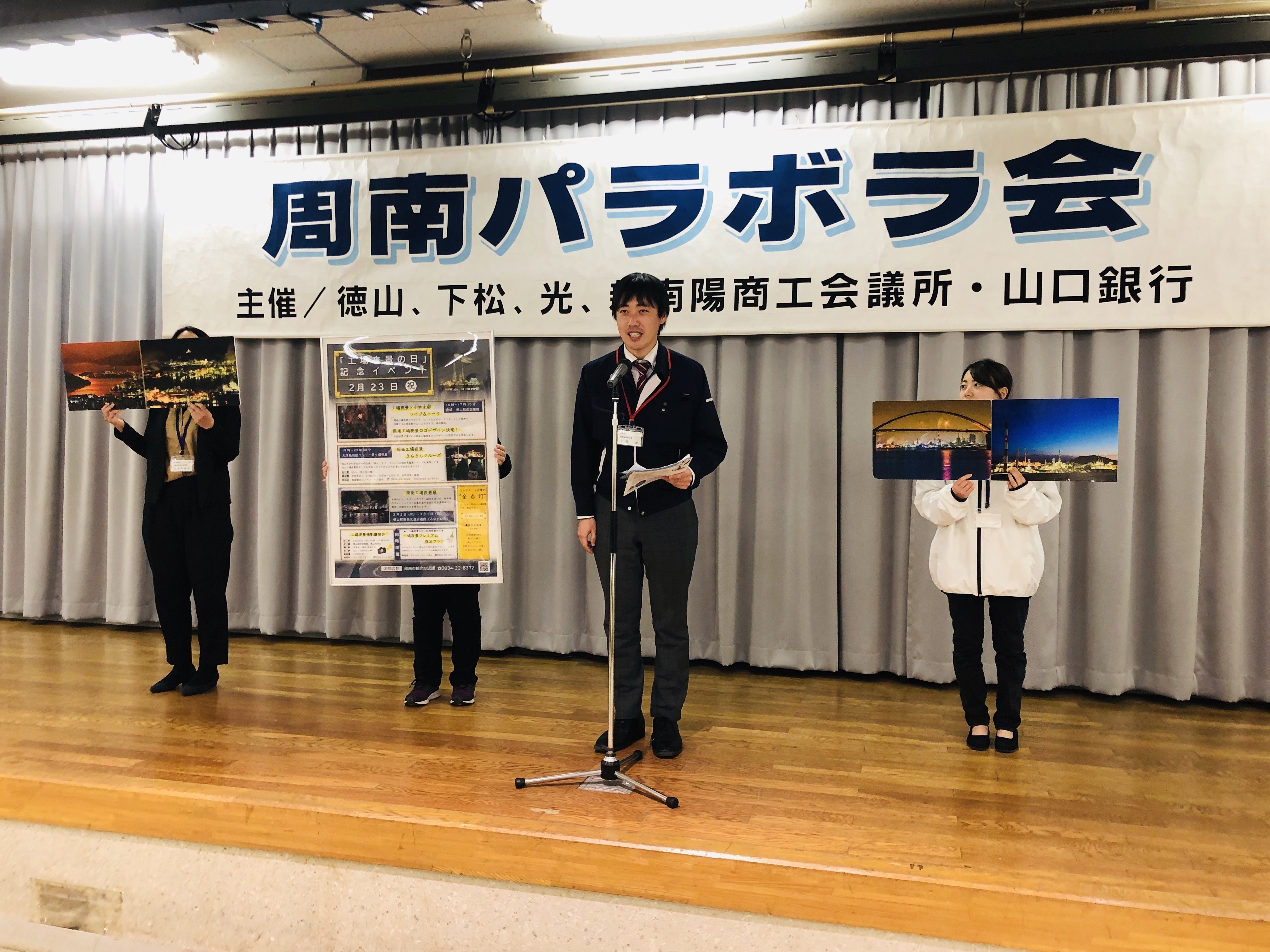 タウンマネージャーの平義彦です。2月21日(金)は徳山商工会議所など主催の名刺交換会「周南パラボラ会」(年4回開催)に参加し、初めてお会いした経済界の皆様に4月発刊の「出張者向け周南グルメ豆本」をアピールしました。中心市街地活性化がミッションの私は、徳山駅前のオフィスビルに新たな企業が進出するという話を聞いていました。なんと、周南市の担当者のご紹介で、ご担当者様にお会いできました。株式会社アテナさん。しかも、同社の若手社員さんが我々のクラウドファンディングに協力してくれたとのこと。すごいご縁に感謝。ネットのつながりはすごいですね。ありがとうございます!引き続き、頑張ります。