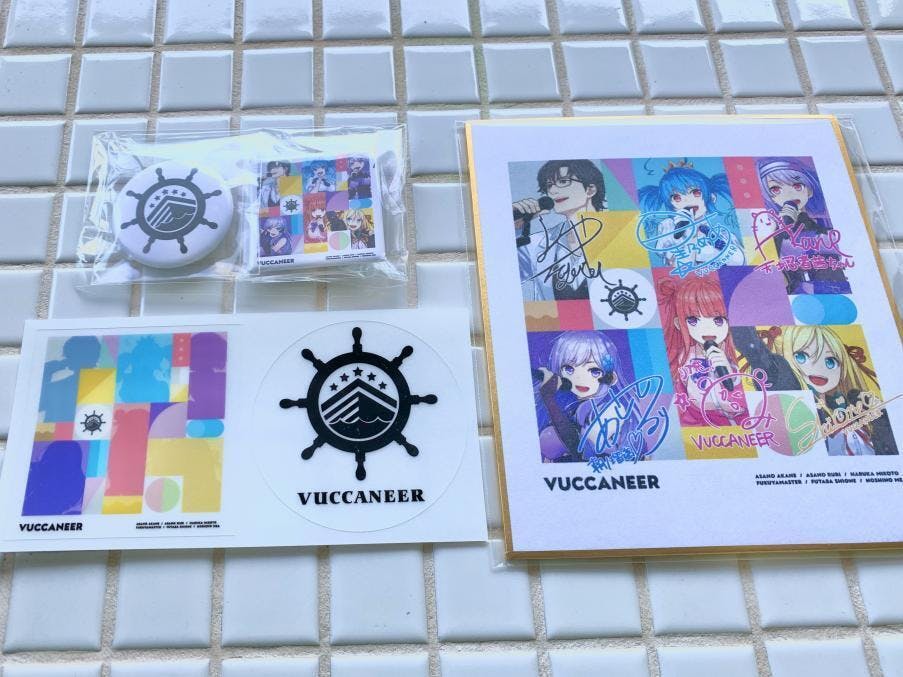 こちらの画像の通り、缶バッジ・ステッカー・色紙が完成しました。
