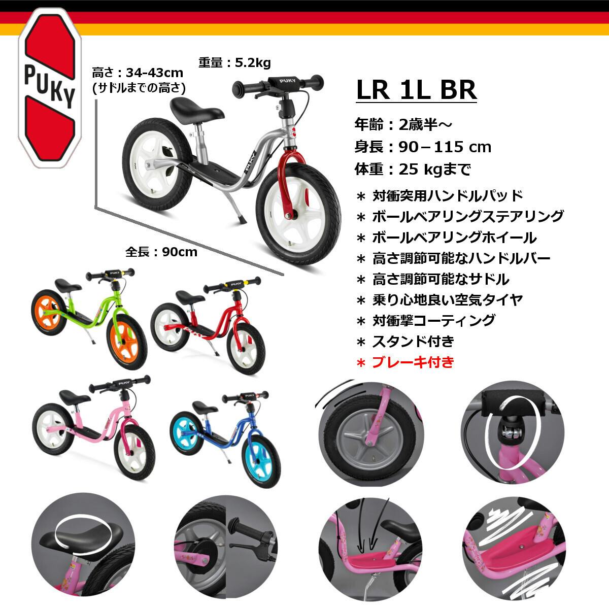 LR 1L BrはLR 1Lの空気タイヤに加えてブレーキを取り付けたバージョンです。ブレーキはこのくらいのお子様の力では上手く活用できない事が多く、Pukyのモデルの中でも意図的に取り付けていないものが多いですが、こちらは小さい子供の内からでも将来的に自転車で使うようなブレーキに慣れさせておく為にブレーキが取り付けられています。