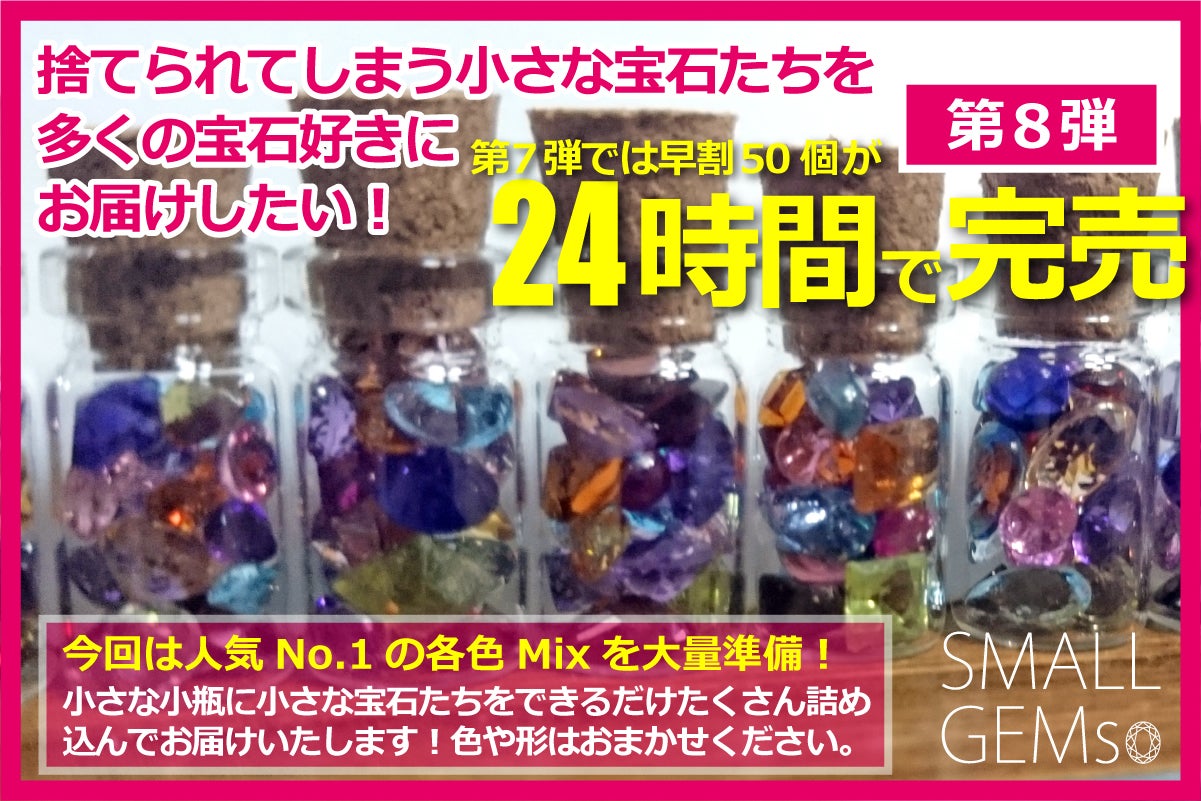 今回は、これまでのプロジェクトでも人気No.1で短時間で予定個数が完売してしまう各色Mixの「小さな宝石たち」をお届けさせていただきたいと願っております。
