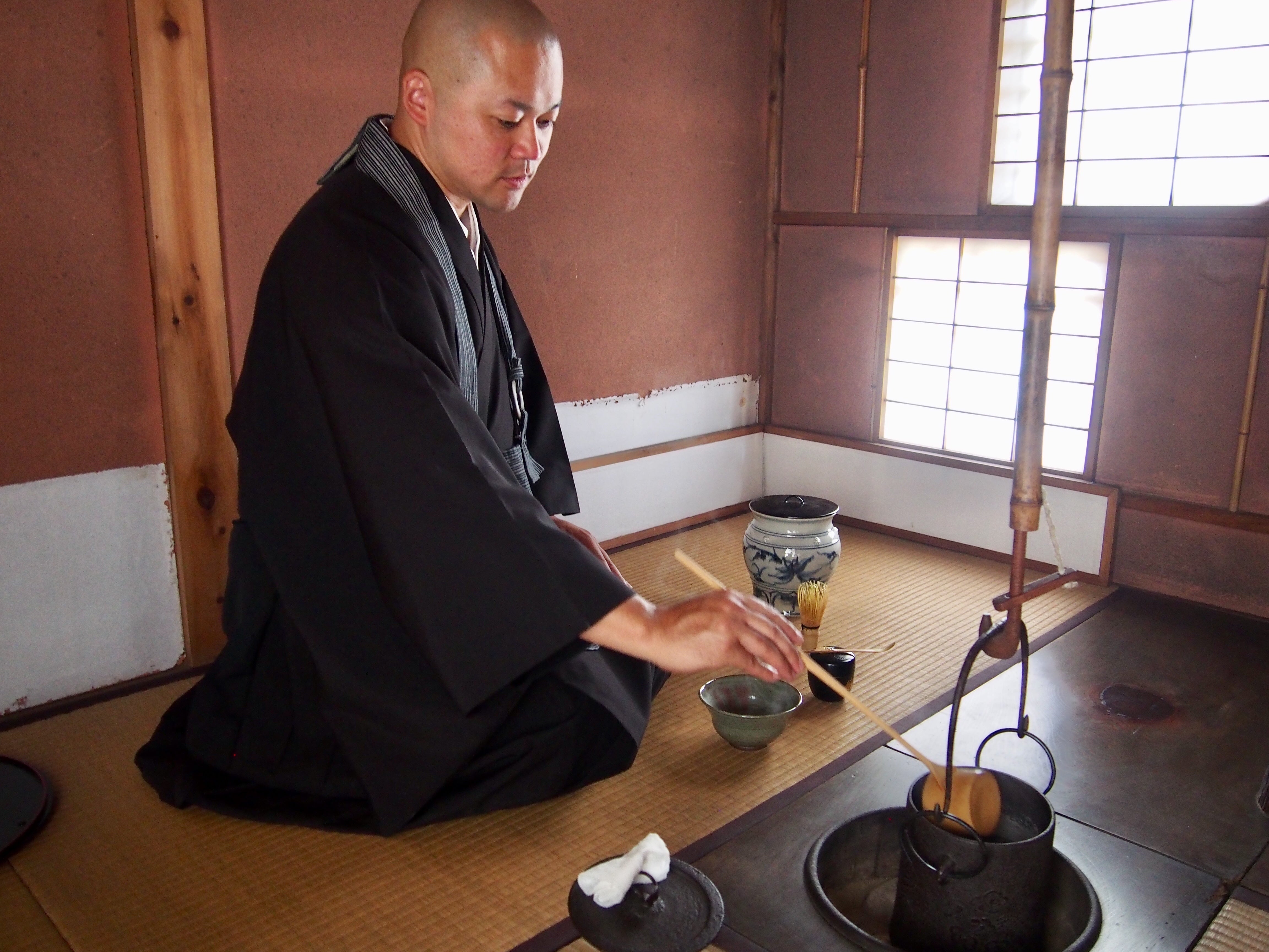 住職さんのありがたいお話を聞きながらお抹茶を頂く。ほっとひと息、幸せな時間です。