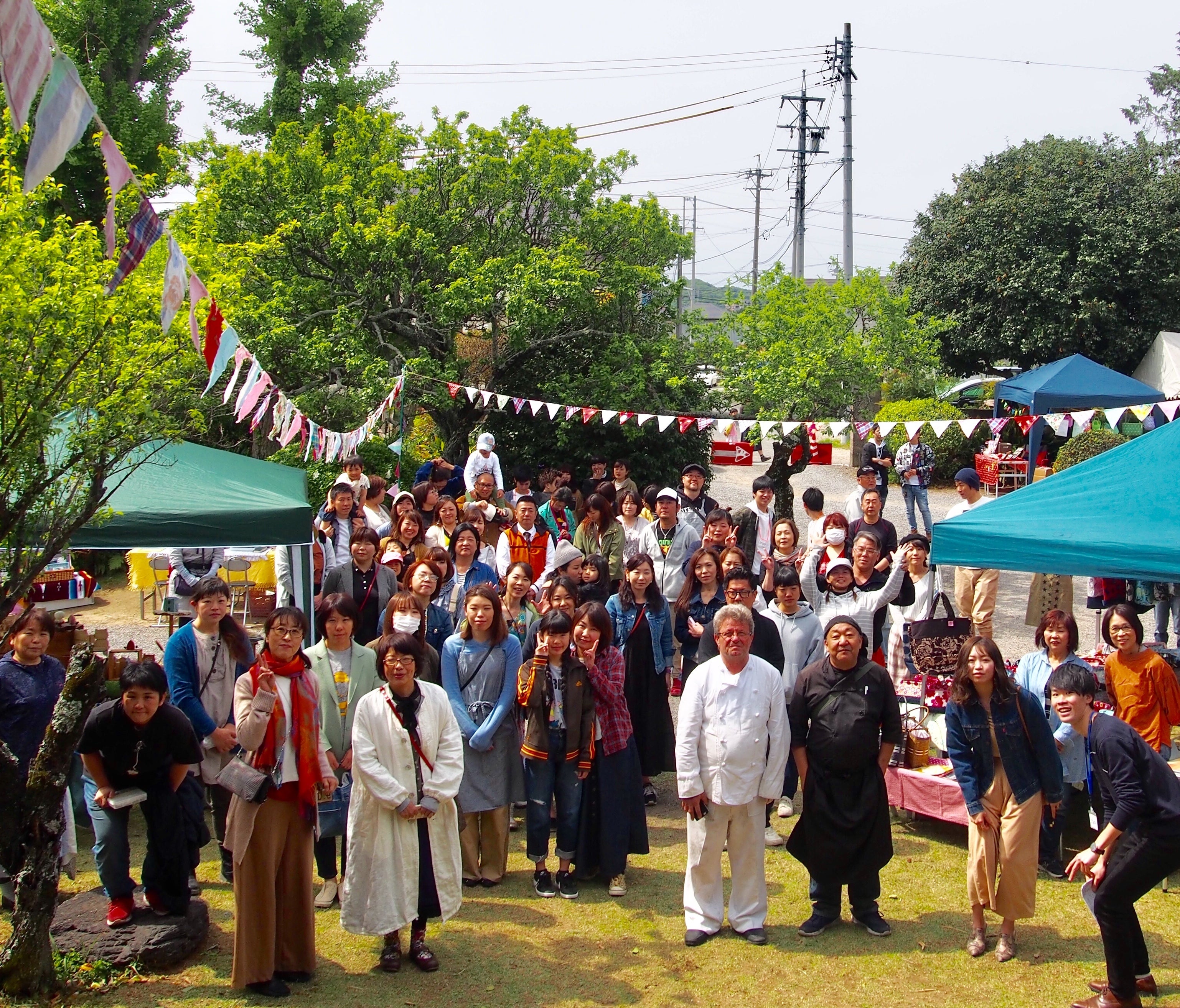 マルシェの出店者さんたちとお寺の本堂前で記念撮影しました!