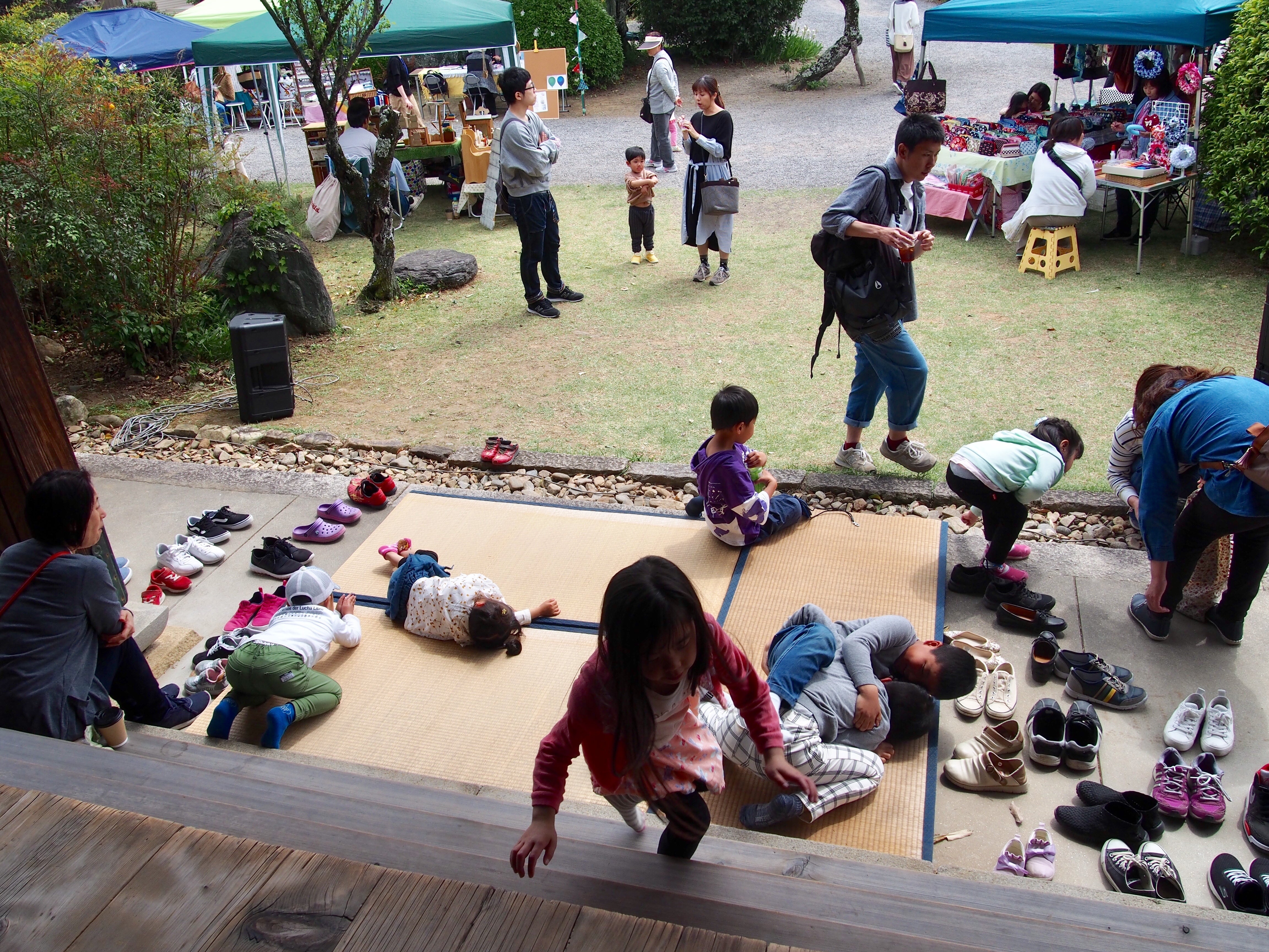 本堂や境内に約50店舗のハンドメイド雑貨やキッチンカーが集まって賑わいました。