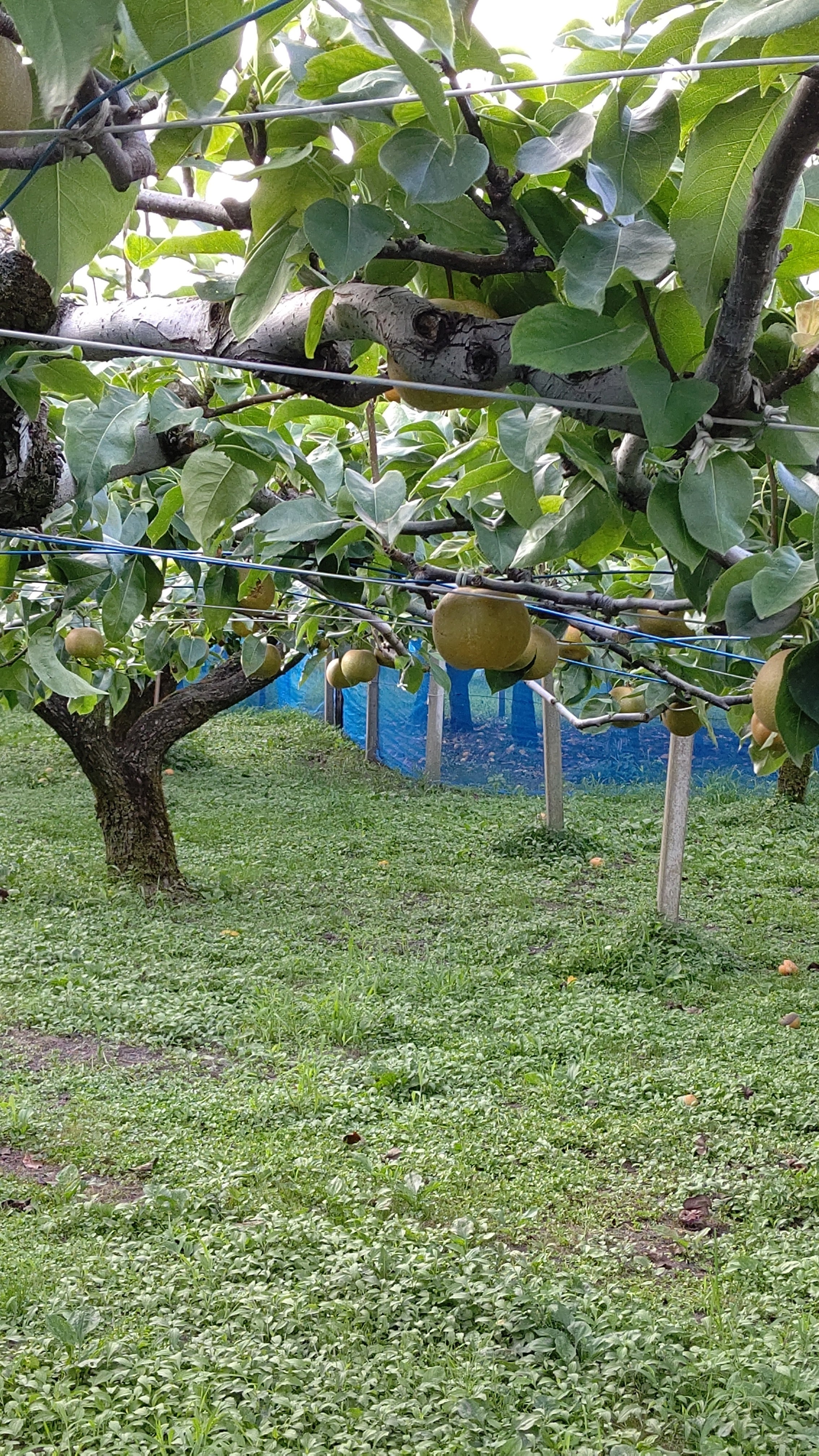 ③技術向上。→これから10月または11月に、樹の剪定(せんてい)という来年用の実を作り出す下準備があります。収量と品質を高めるため、先輩農家さんへ出向いて腕を上げる勉強をします。