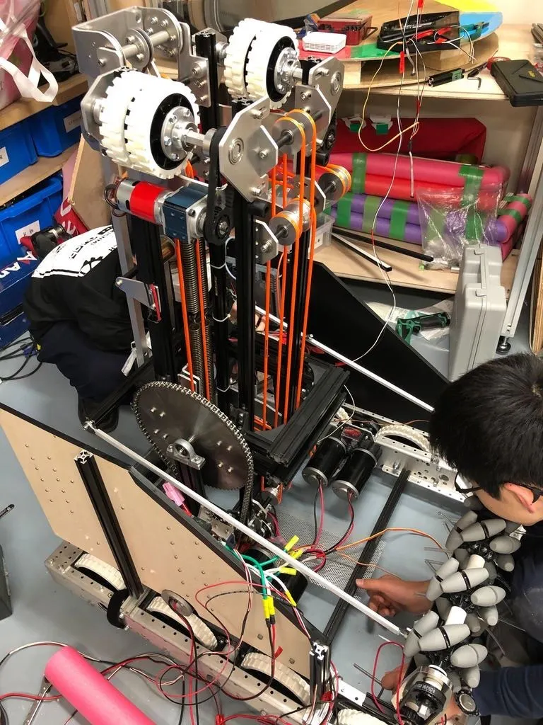 シューターの取り付けが終わり、あとは配線と細かい調整を残すだけとなりました!(クライム機構をまだ取り付けてないのは秘密です)