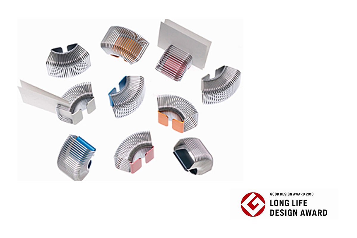 楓岡ばね工業有限会社は、デザイナーとの共同プロジェクトで、デザイン雑貨を販売してきた長年の実績があります。その中でもカードホルダーのhaneは2010年にグッドデザイン賞ロングライフデザイン賞を受賞しており、今も愛され続けています。