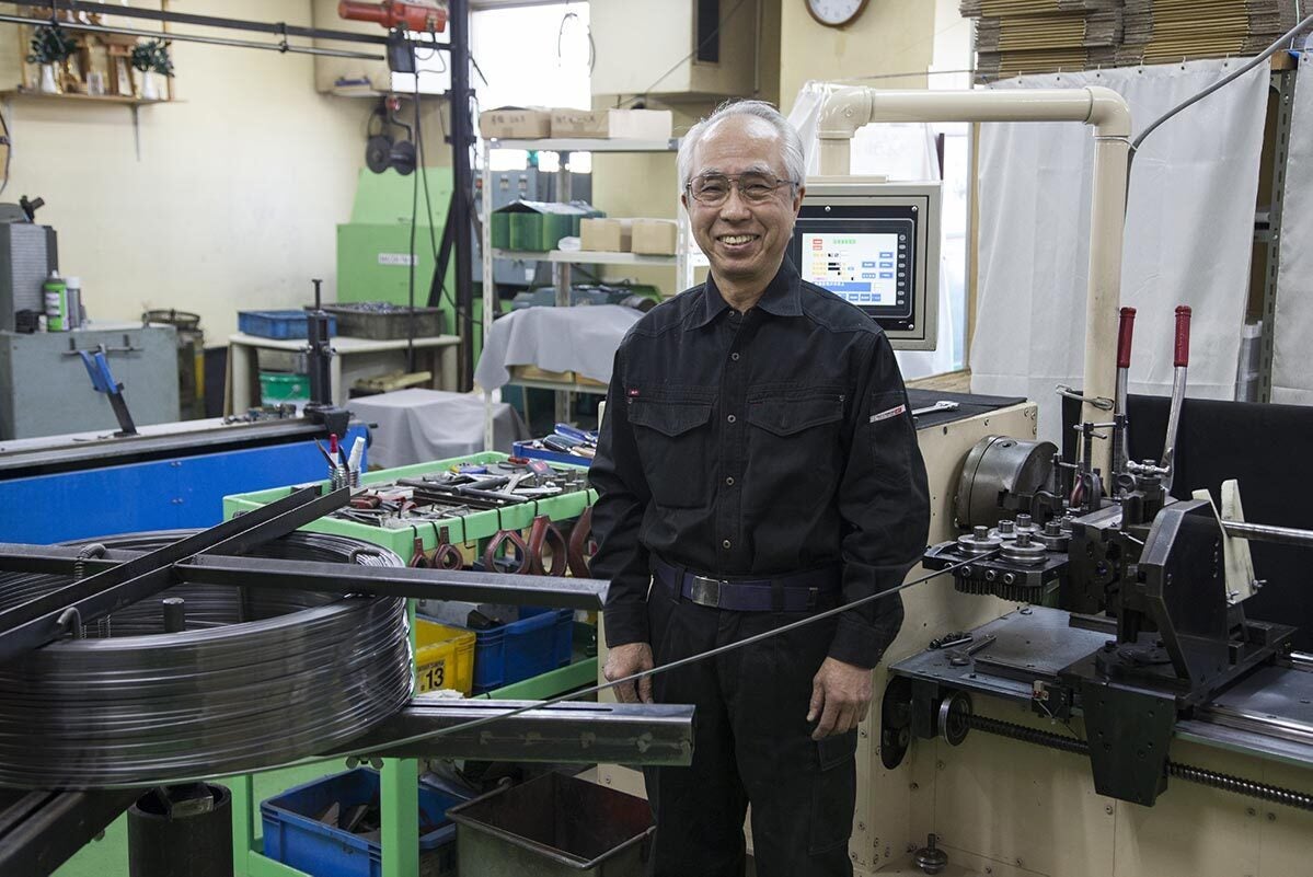 楓岡ばね工業有限会社の代表取締役であり職人の、楓岡武之様が、熟練の
