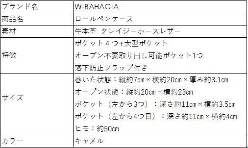 「W-BAHAGIA」のレザーロールペンケースとなります。