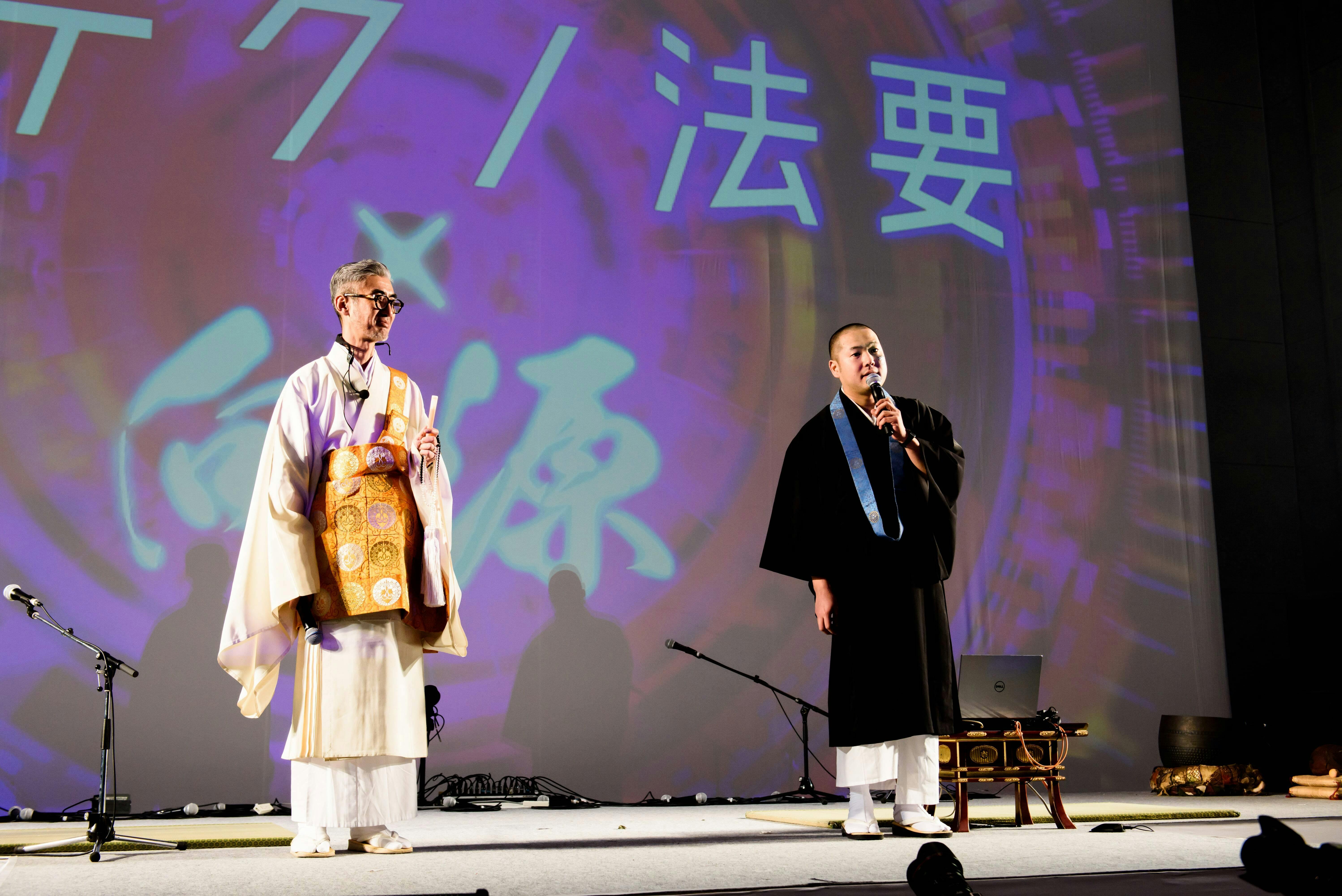 「テクノ法要」の朝倉行宣住職と、寺社フェス「向源」代表の友光雅臣副住職がご指定の場所へ出張しあなたのためだけに説法いたします (説法の後、さまざまなお悩み相談もお受けいたします)