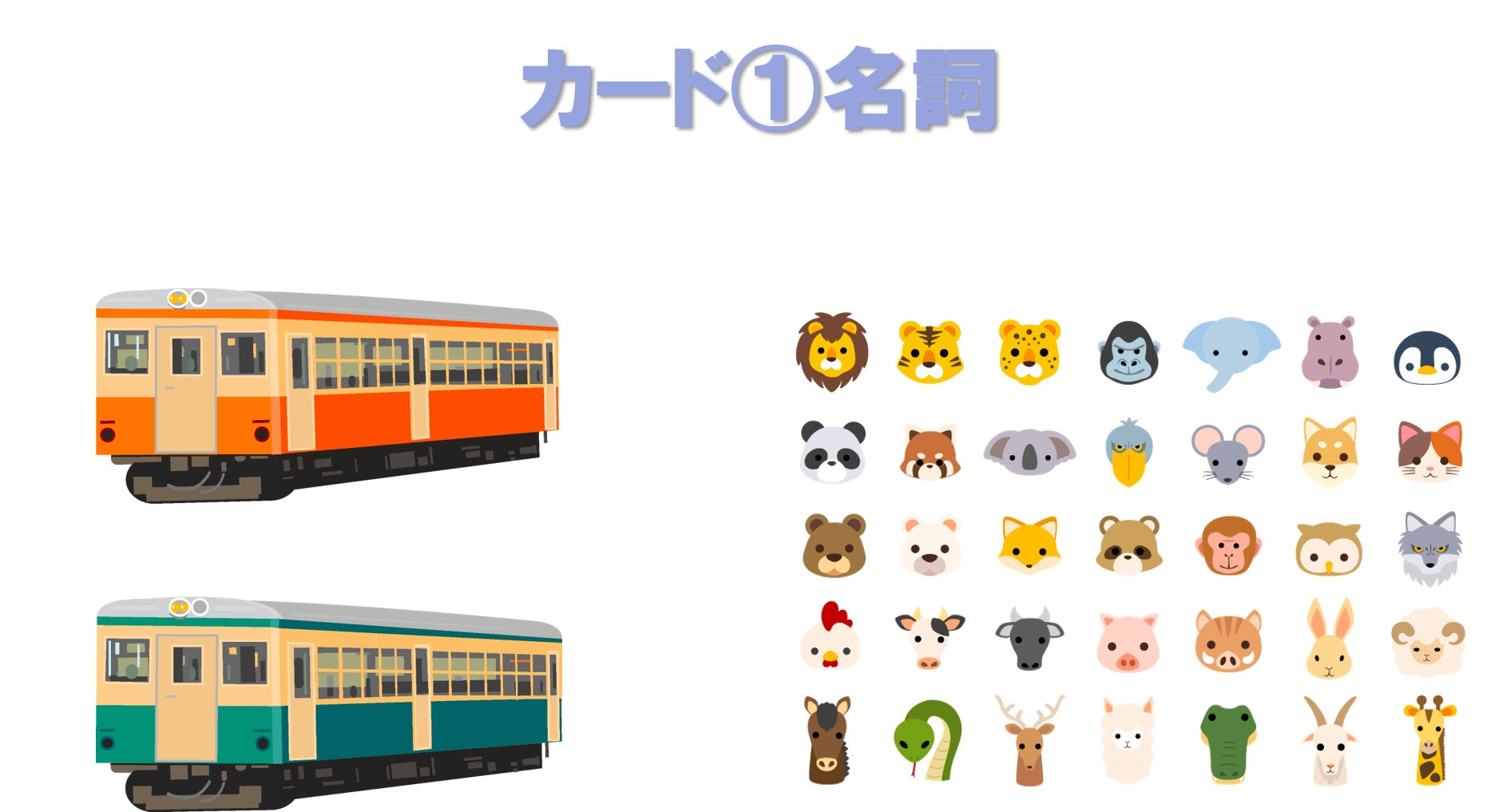 名詞カードに書いてある「ゾウ」や「消防車」などのお題を同じチームの仲間に当ててもらいます。