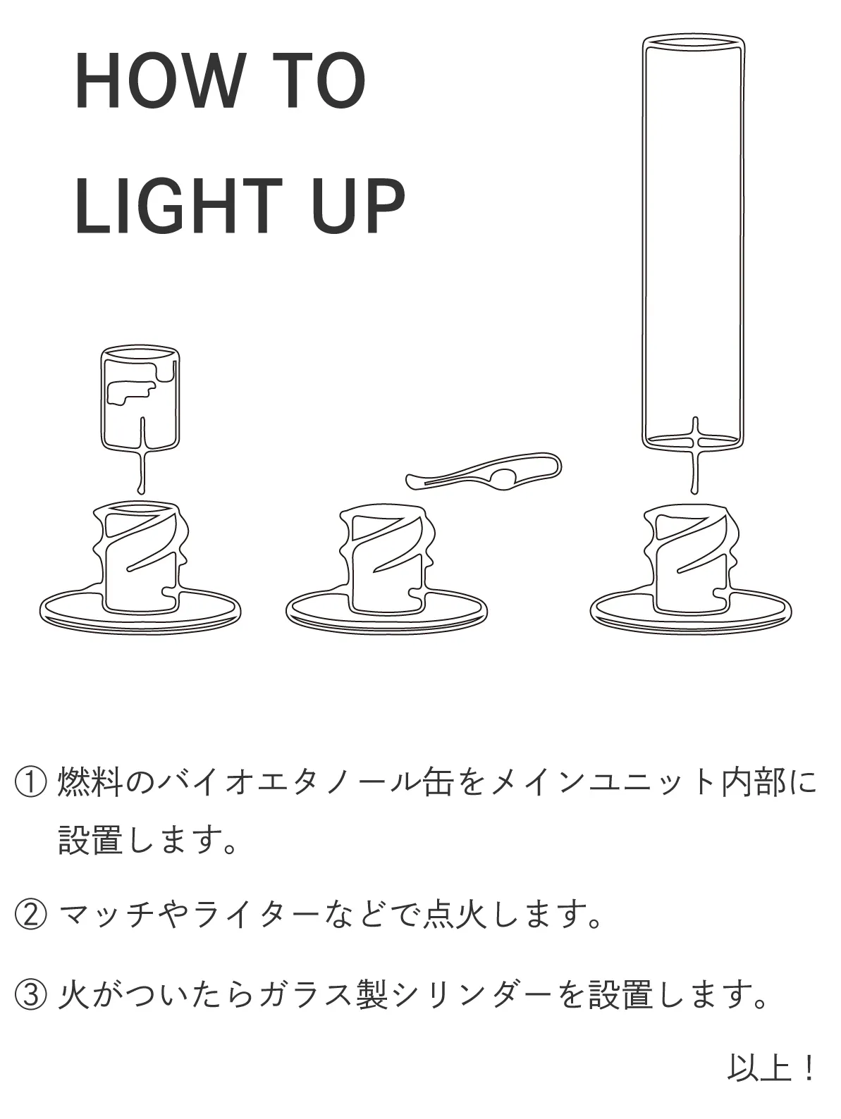 着火の手順は工数が少なく簡単で、燃料缶(バイオエタノール)をメインユニットに設置し、点火します。