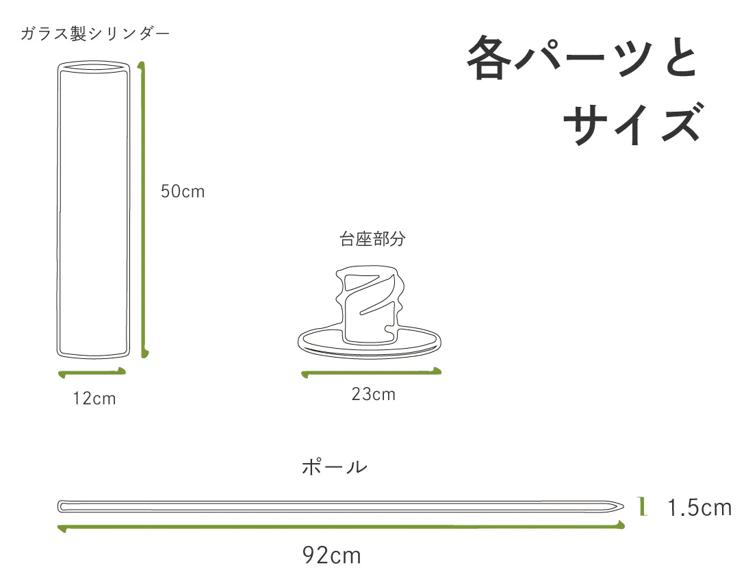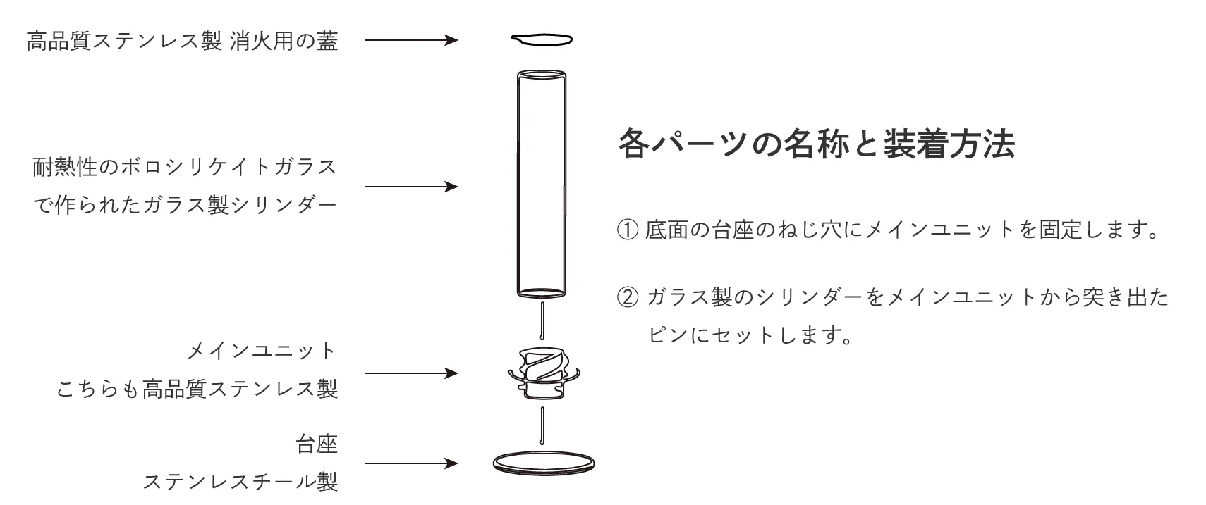 ガラス製のシリンダーは着火後、メインユニットから突き出たピンに合わせてセットします。