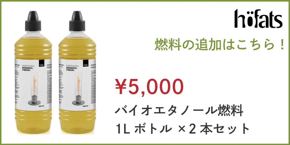 ・バイオエタノール燃料1缶あたりの燃焼時間:1.5時間(ホーファッツ社バイオエタノール缶を使用*)