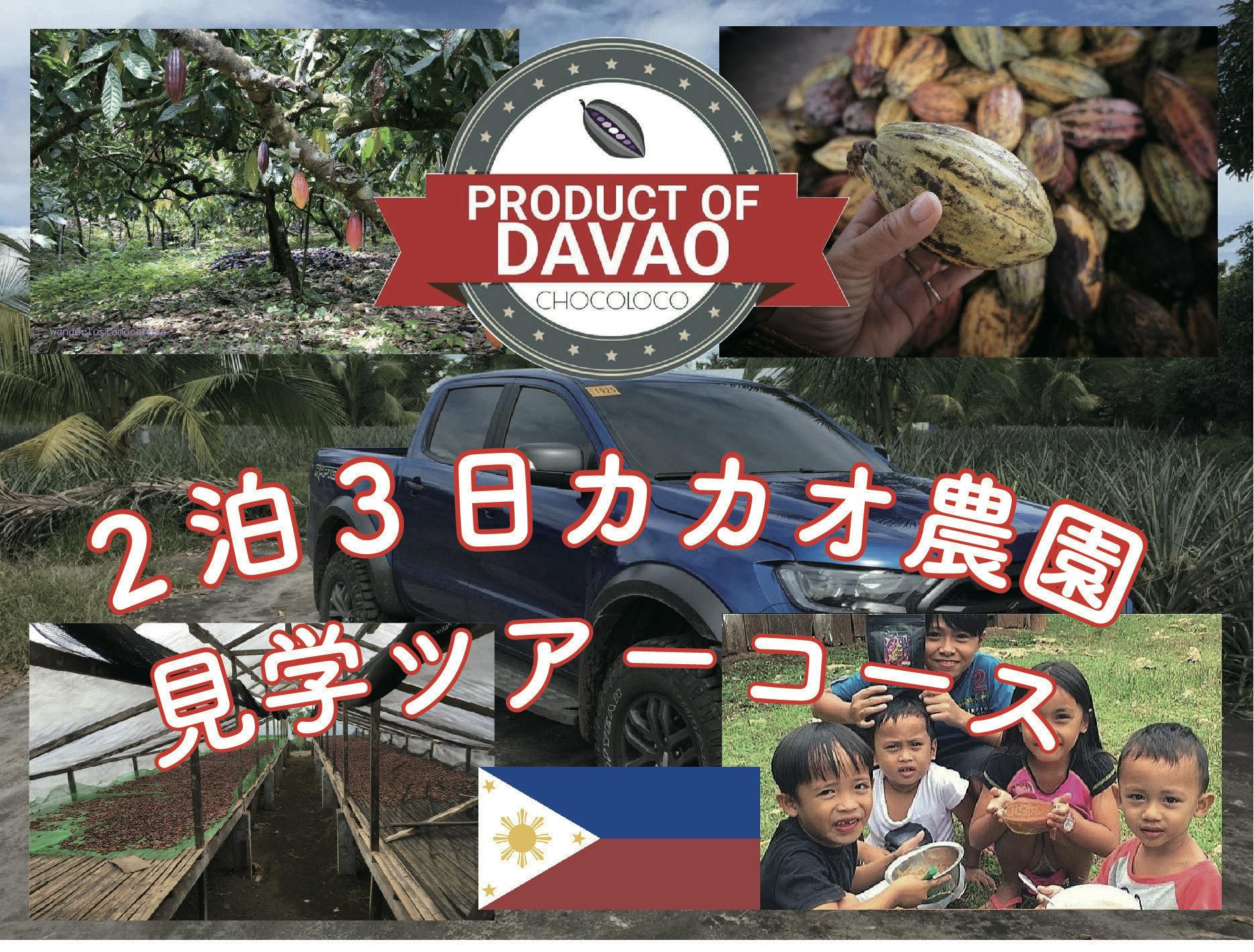フィリピンのカカオ一大生産地の「ダバオ」へ農園の見学ツアーにご招待いたします!CHOCOLOCOの現地農園を見学しながら、カカオ農場の見学、工場、生産過程、現地ローカルガイドなど、余すことなくご案内します!本物のカカオを直でみられる機会は滅多にありませんし、CHOCOLOCOプロダクトの製造過程を見れるチャンスです。日本語ガイドも同行しますので、英語が喋れなくてもOK!