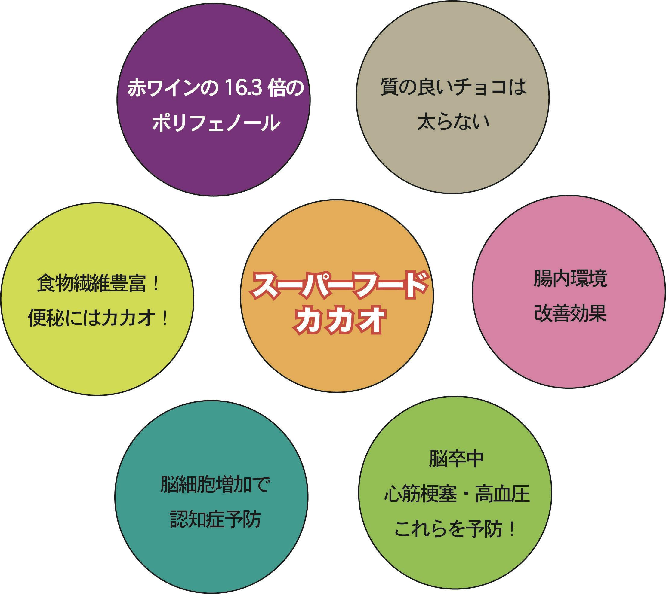 カカオには様々な健康効果があることが知られてます。カカオには老化を予防するポリフェノールが豊富に含まれており、美容にこだわる人へは必須の食品であること。また、食物繊維が豊富に含まれているので体内の浄化効果に優れていること。そして、チョコレートは食べすぎると太ってしまうと心配する人も多いですが、カカオの割合が多く糖質にもこだわりを持ったクオリティの高いチョコレートは太らないのでダイエットにもぴったり!