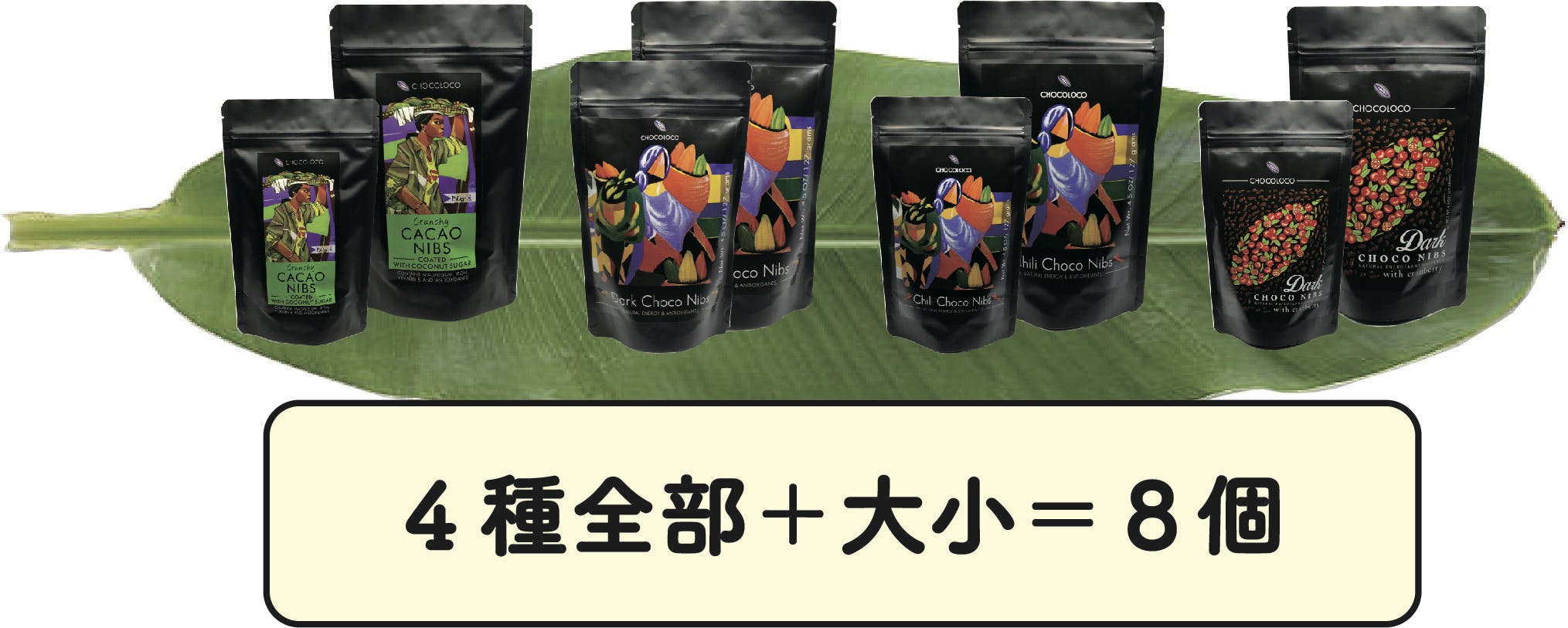 CHOCOLOCOの4つのフレバー、2サイズを全部お届けします!