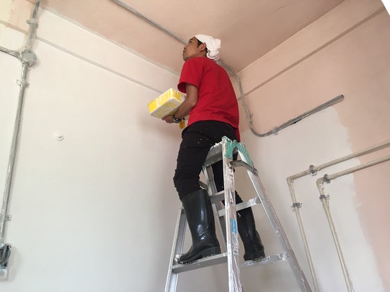 壁のペンキ塗り。