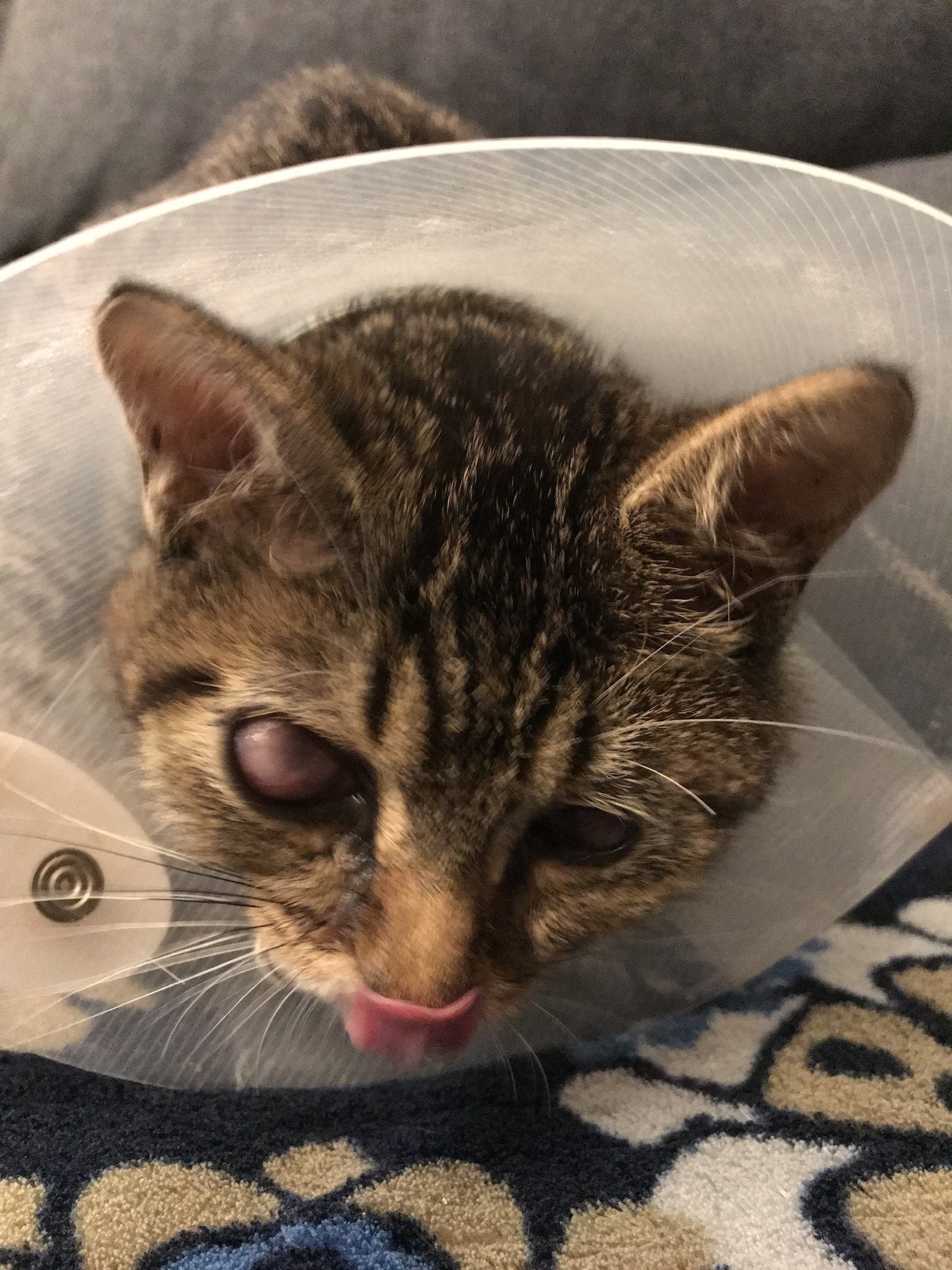 保護した当初から通院していたのですが、誤診によりヘルペスだと考えられておりました。すでに医療費が50万円近くに上っており、個人でのこれ以上の支出は不可能であることから皆様の温かいお力添えを頂きたく始めました。