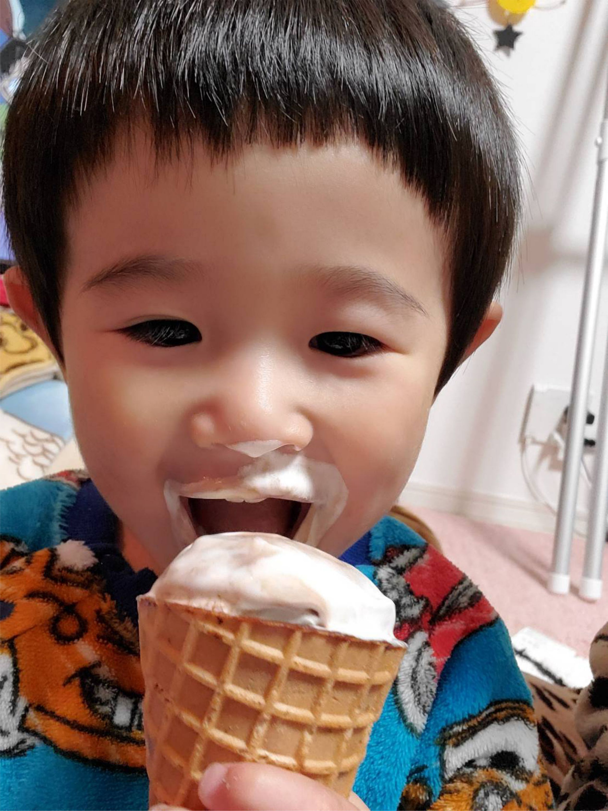 子どもって何でアイス食べると絶対、鼻に付けちゃうんでしょうね笑