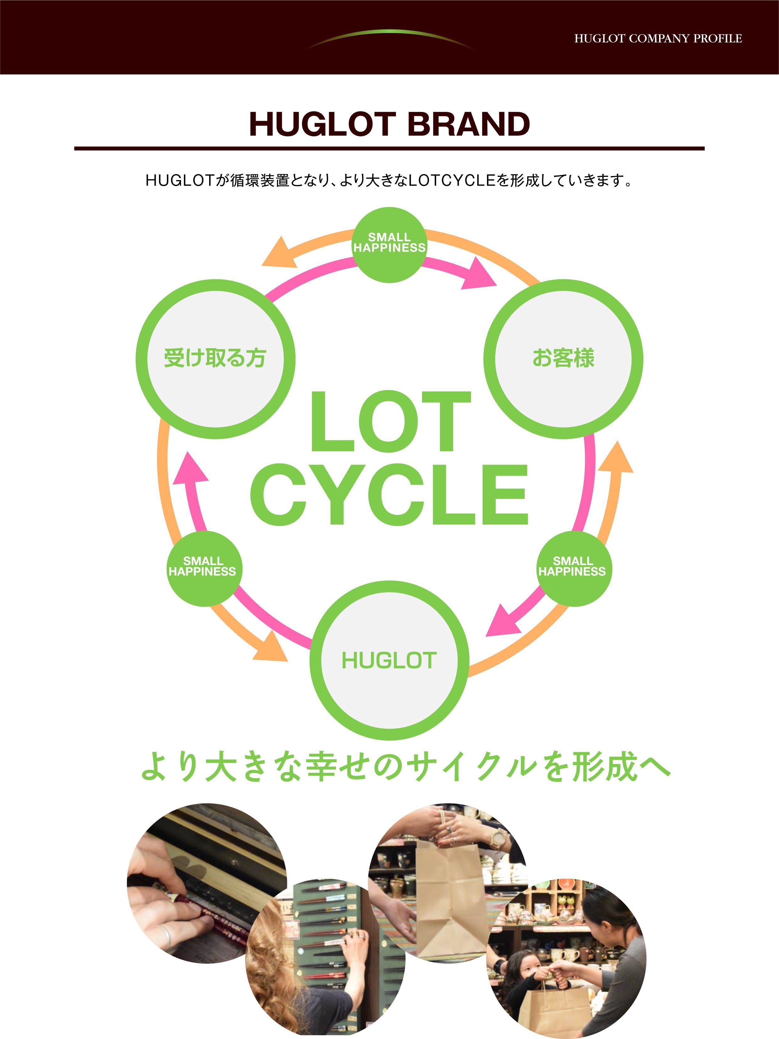 こういった感じで、HUGLOT、お客様、受け取る方がSMALL HAPPINESS(ちっちゃな幸せ)を循環させ、