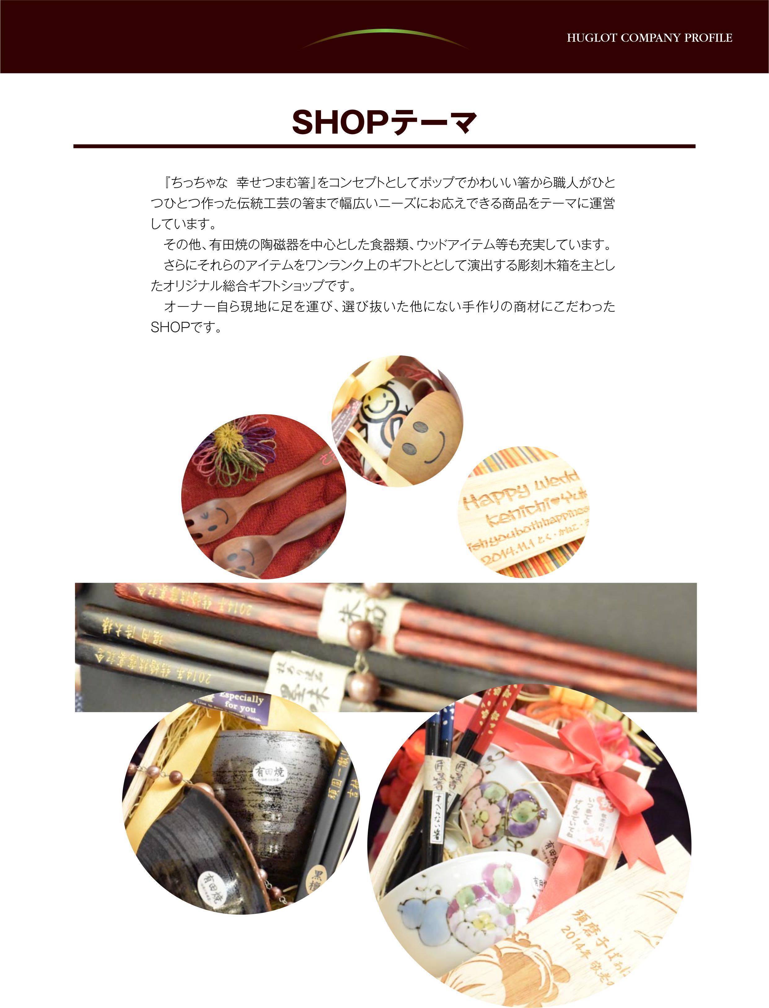 お店はお箸の刻印を中心とした、オリジナルギフトショップを運営しています。