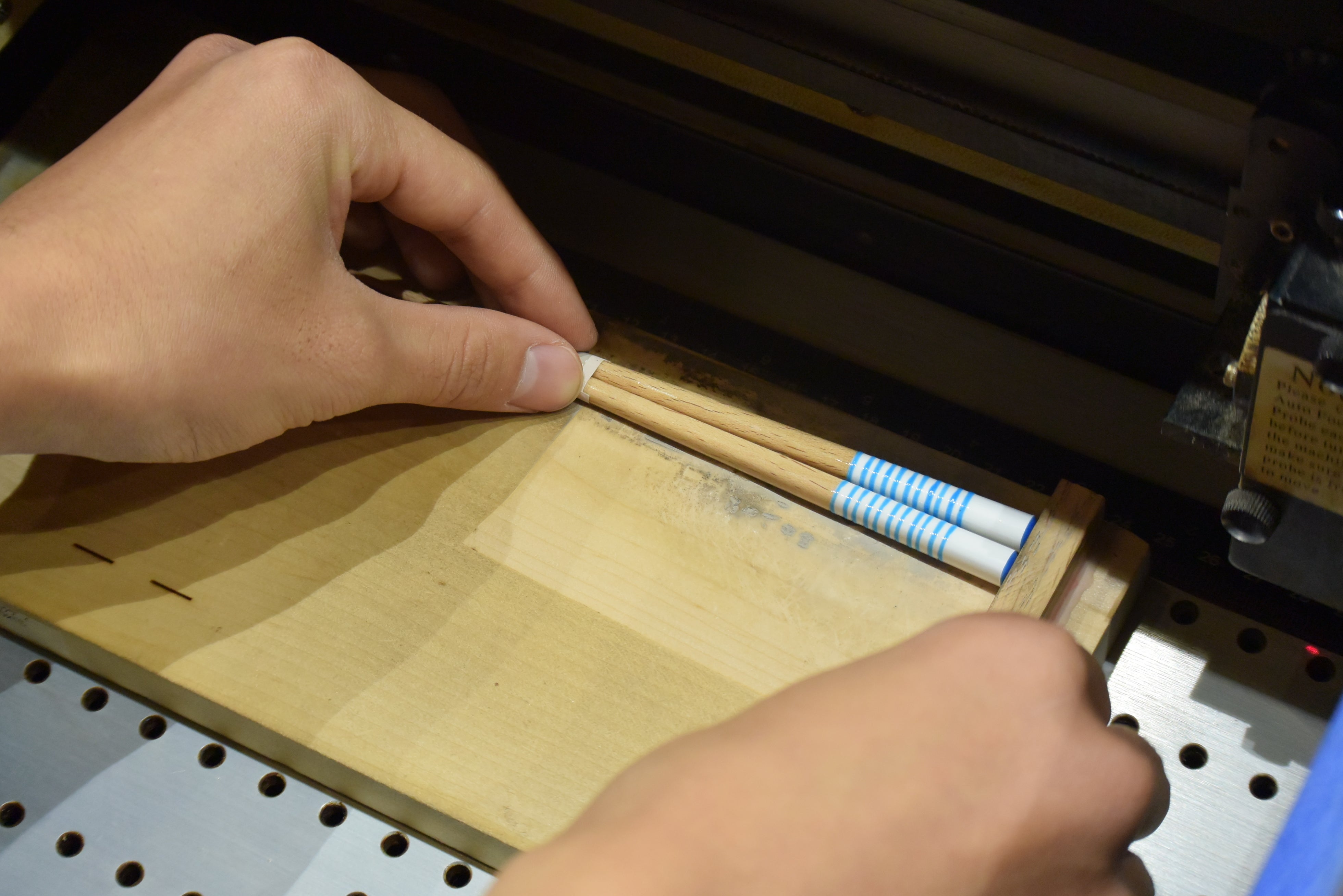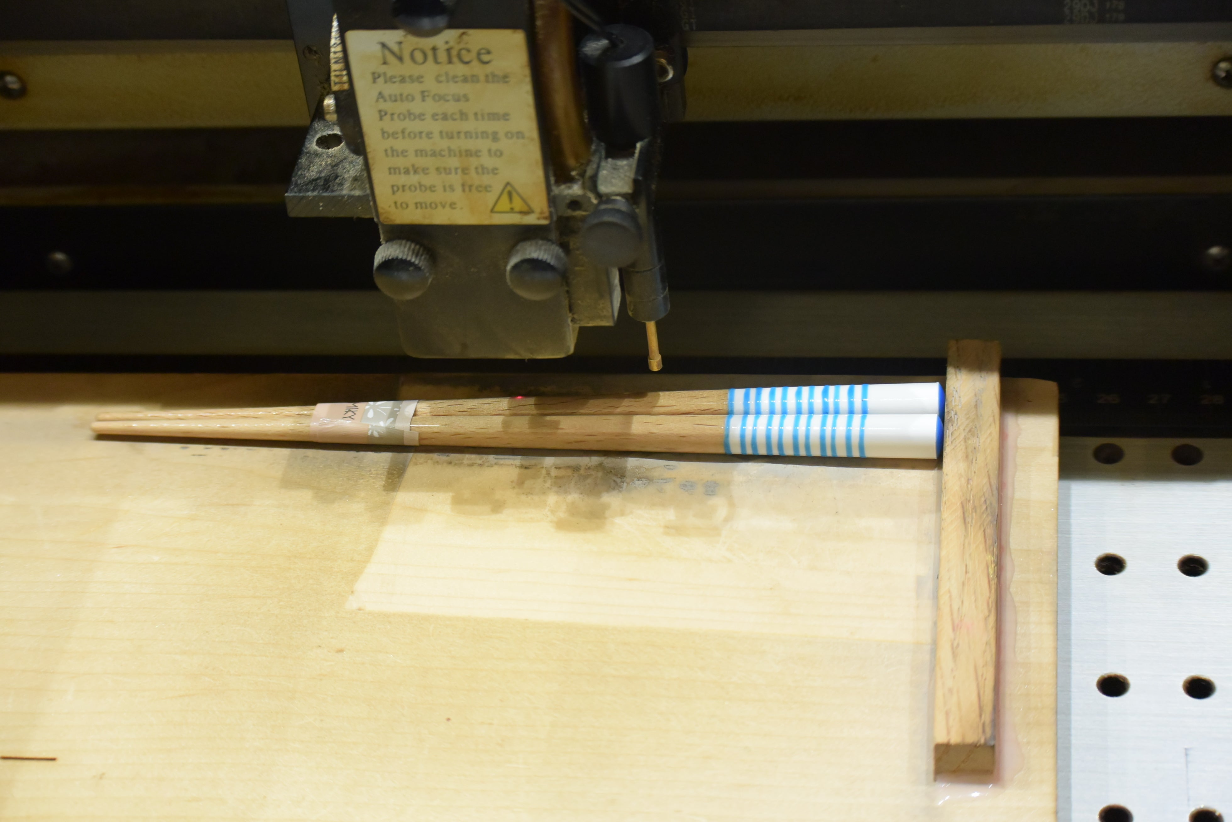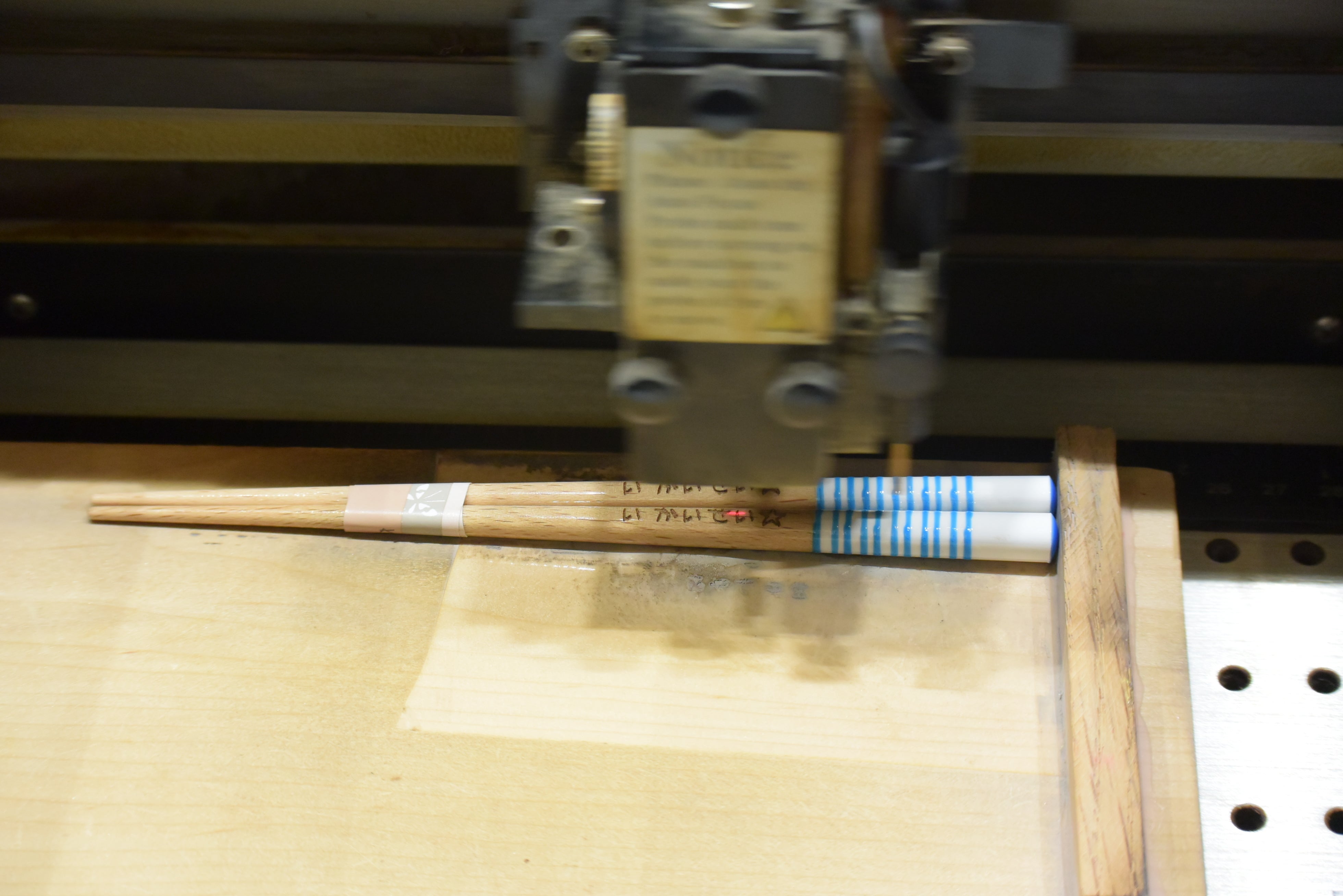 その後、園児達のリストを頂き、本業でもあるお箸に刻印をしました。